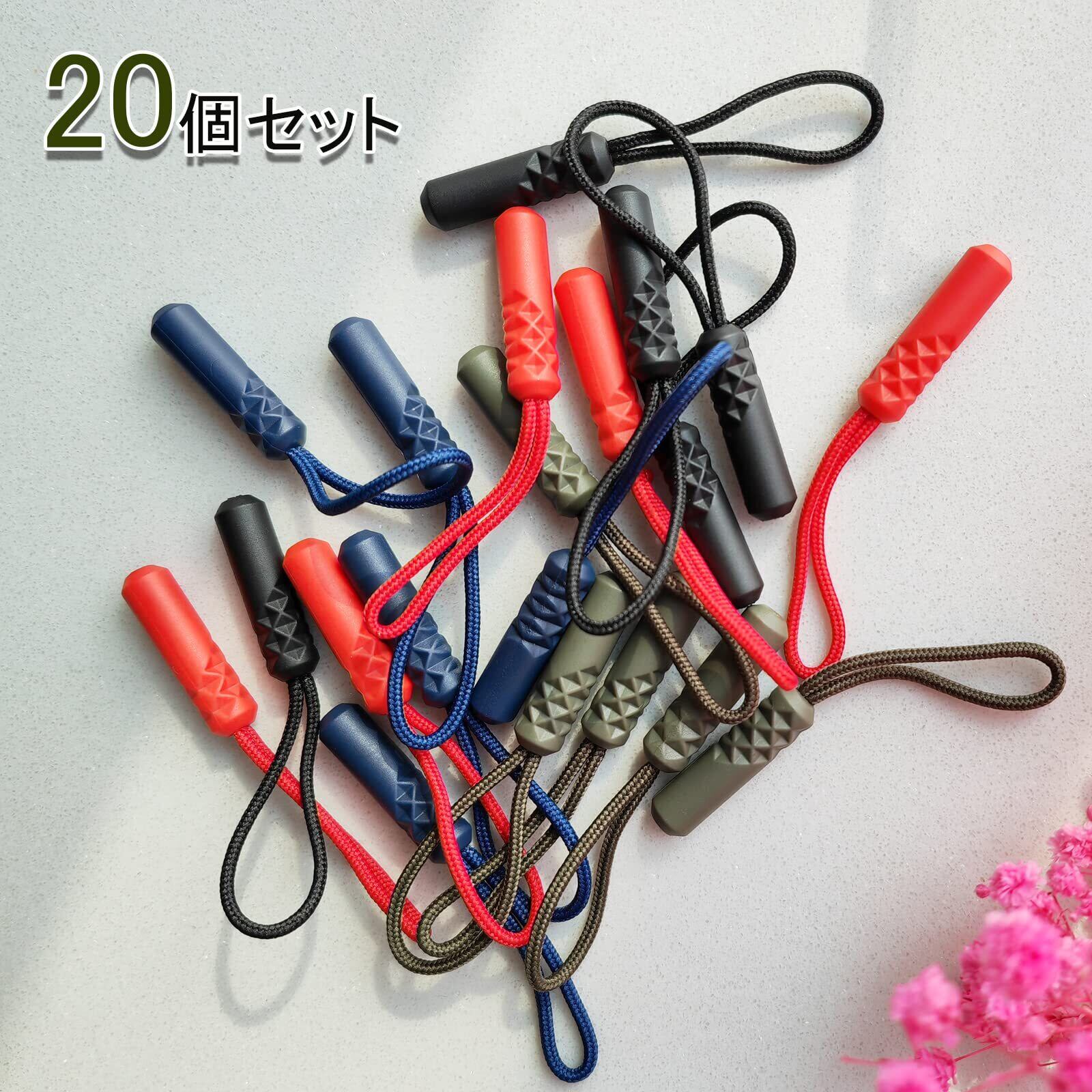 DY.2ten ジッパープル ジッパータブ ファスナープルコード ファスナープル 20本セット ジッパー ファスナー用 交換 プルコード ファスナープルタブ ファスナー 引き手 取り付け簡単 つかみやすい 滑り止め 4カラー 各5本セット ハイカラー