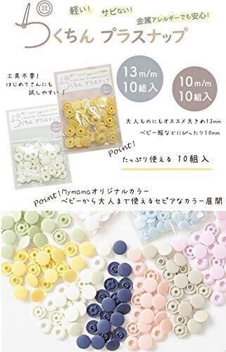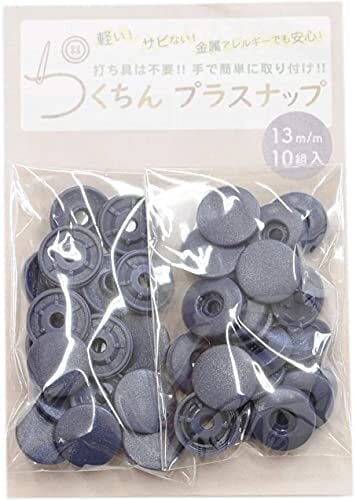 MYmama 工具不要 らくちん ワンタッチ プラスナップ 13mm 10組 プラスチックボタン スナップボタン (ネイビー)
