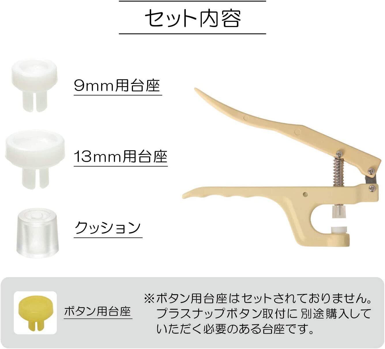 セット内容:ハンディプレス、9ミリ用台座、13ミリ用台座、クッション付