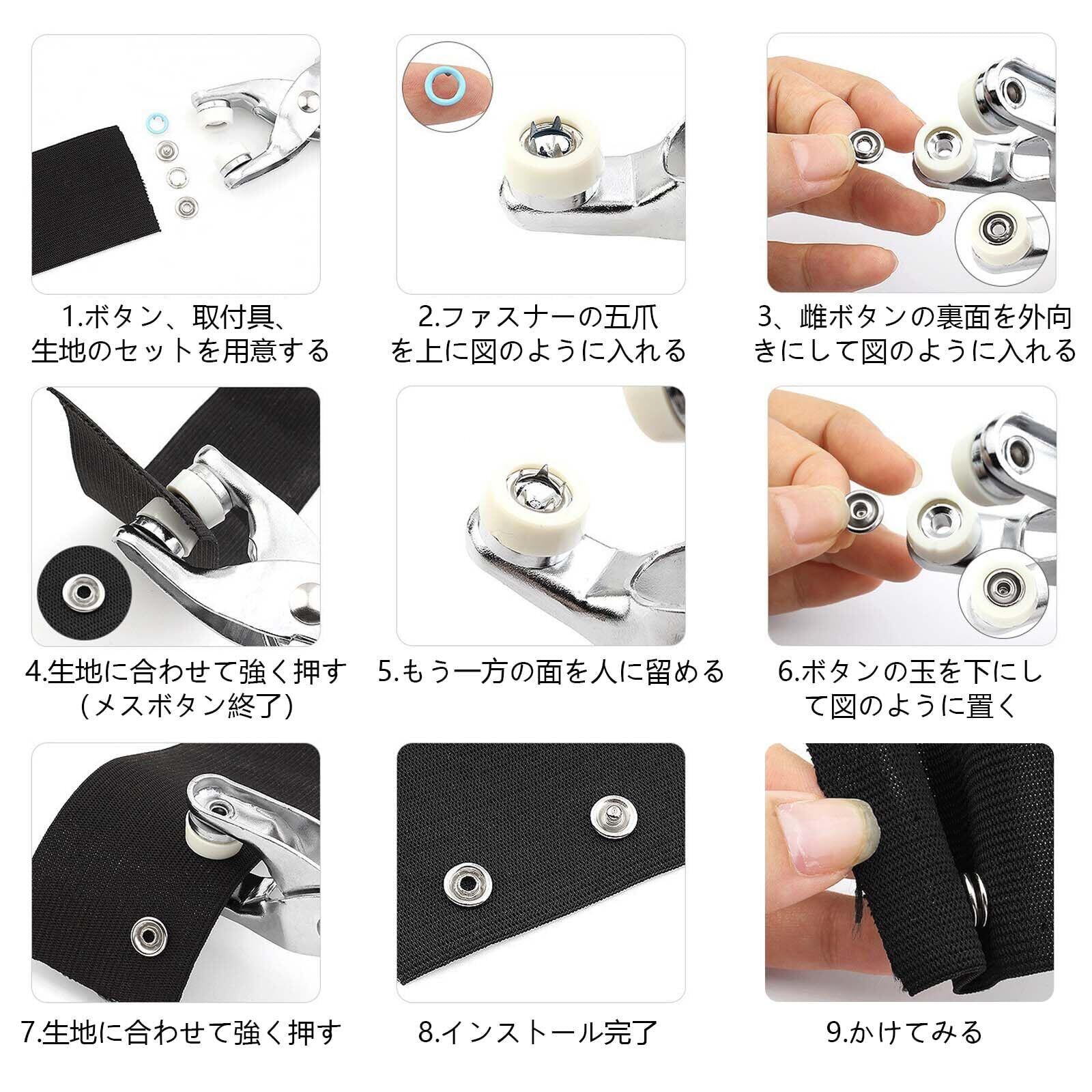 スナップボタンハトメパンチセット金属リングボタン DIY手作り、ペンチ付き、操作が簡単、布革製品、衣類、帽子、バッグ、靴、ジーンズアクセサリーなどに適し
