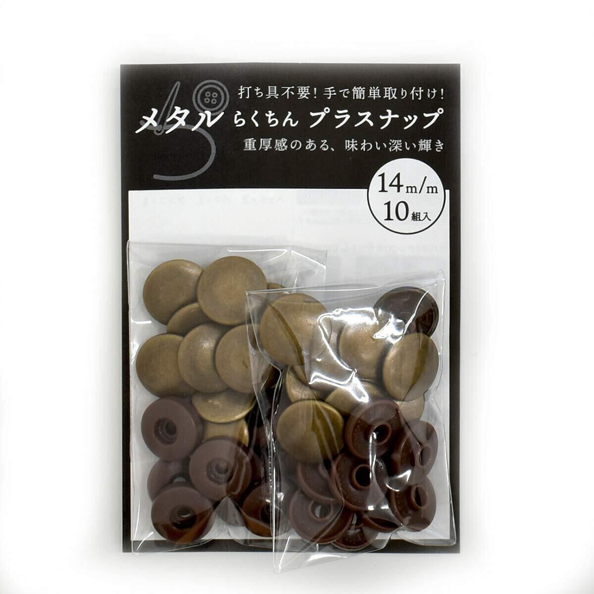 工具不要 メタル らくちん プラスナップ たっぷり 10組 真鍮 ワンタッチ スナップボタン (14mm,アンティークゴールド)
