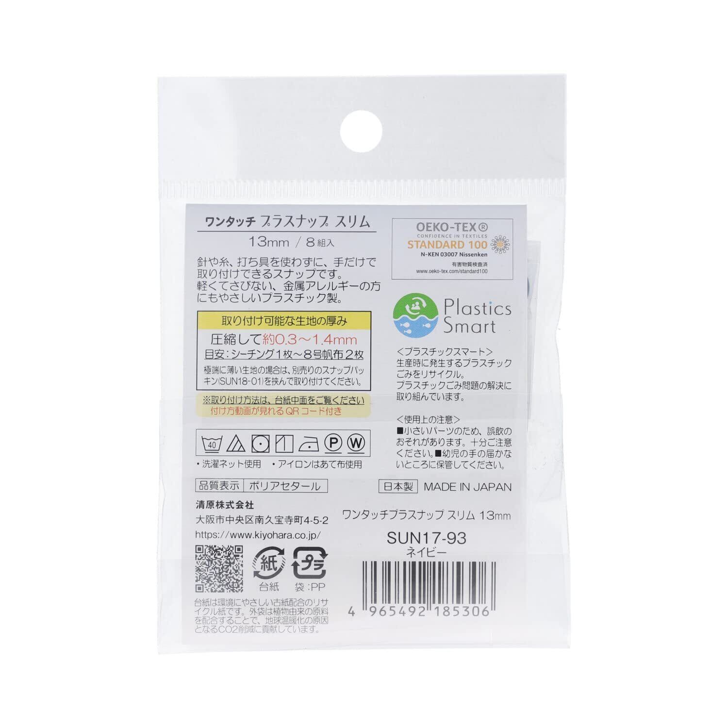 KIYOHARA サンコッコー ワンタッチプラスナップ スリム 8組入 直径13mm ネイビー SUN17-93