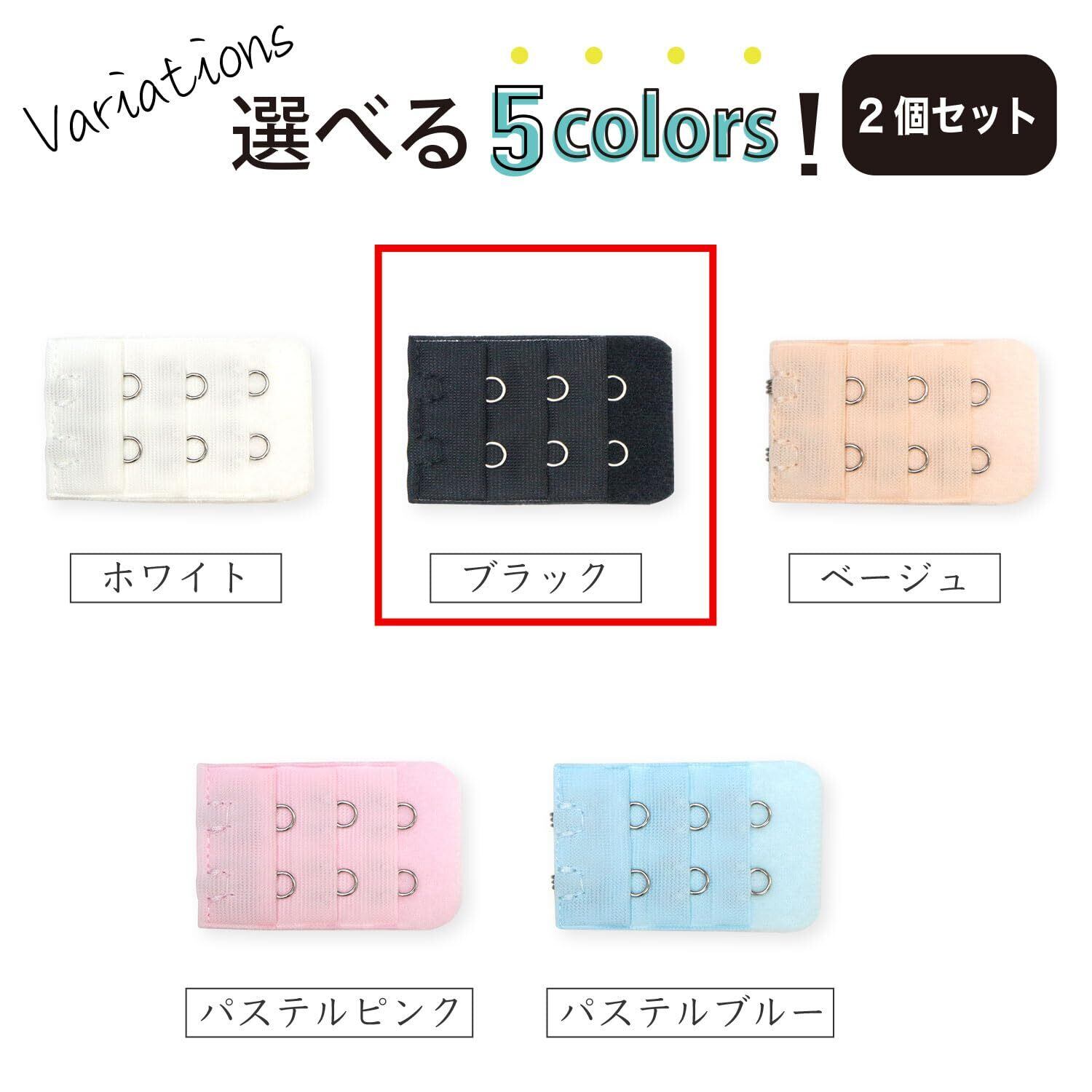 【人気商品】ブラジャー 延長ホック 2段 2個入り 黒 ブラホック ブラ 延長 アンダーサイズアップ サイズ調整 きらきらぷんぷん丸 BK-021