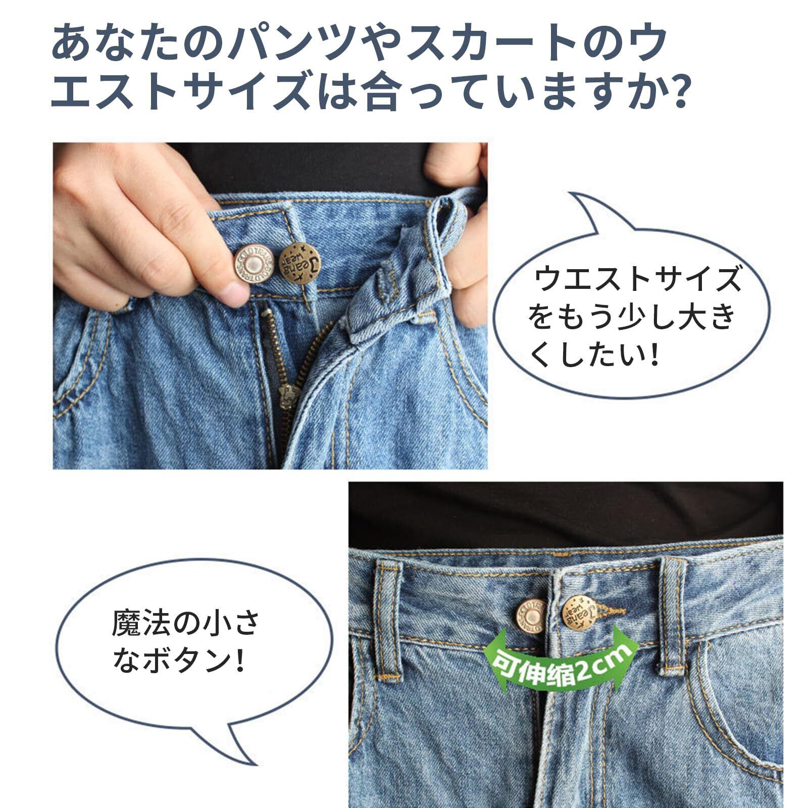【新着商品】デニム ウエスト 延長ボタン 8個セット ウエスト 調整 広げる 取り外し可能なボタン ユニバーサルボタ ン 延長 ジーンズ スカート ズボン 取り外し可能 調節 アジャスター 縫製不要 シリコン製 お直し