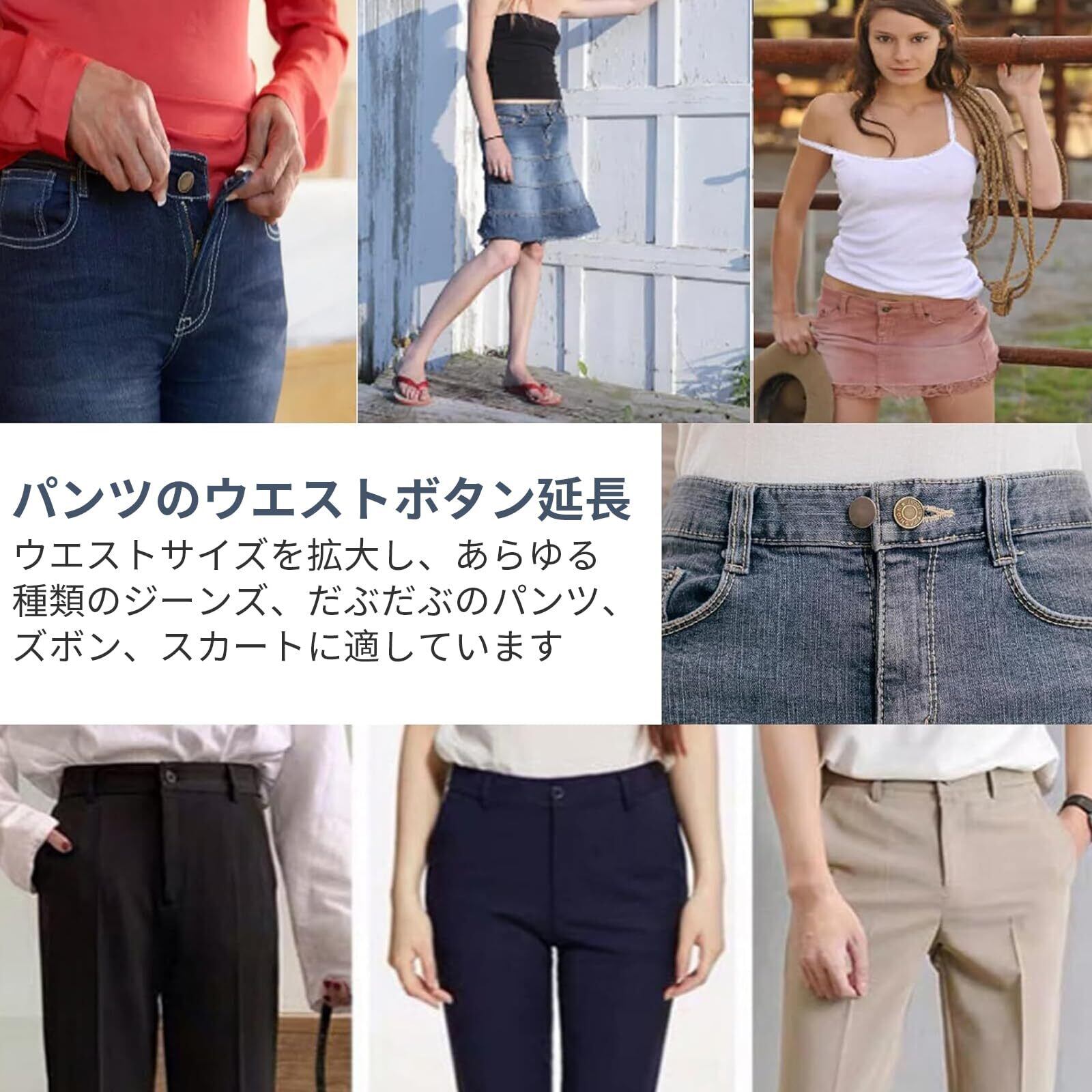 幅広い用途: このジーンズのボタンエクステンダーは、ジーンズ、スカート、ズボン、ズボン、襟などに使用できます。女性、男性、ティーンエイジャー、大人にも適しており、お気に入りのパンツのほとんどを着用するのに役立つ優れたヘルパーです。