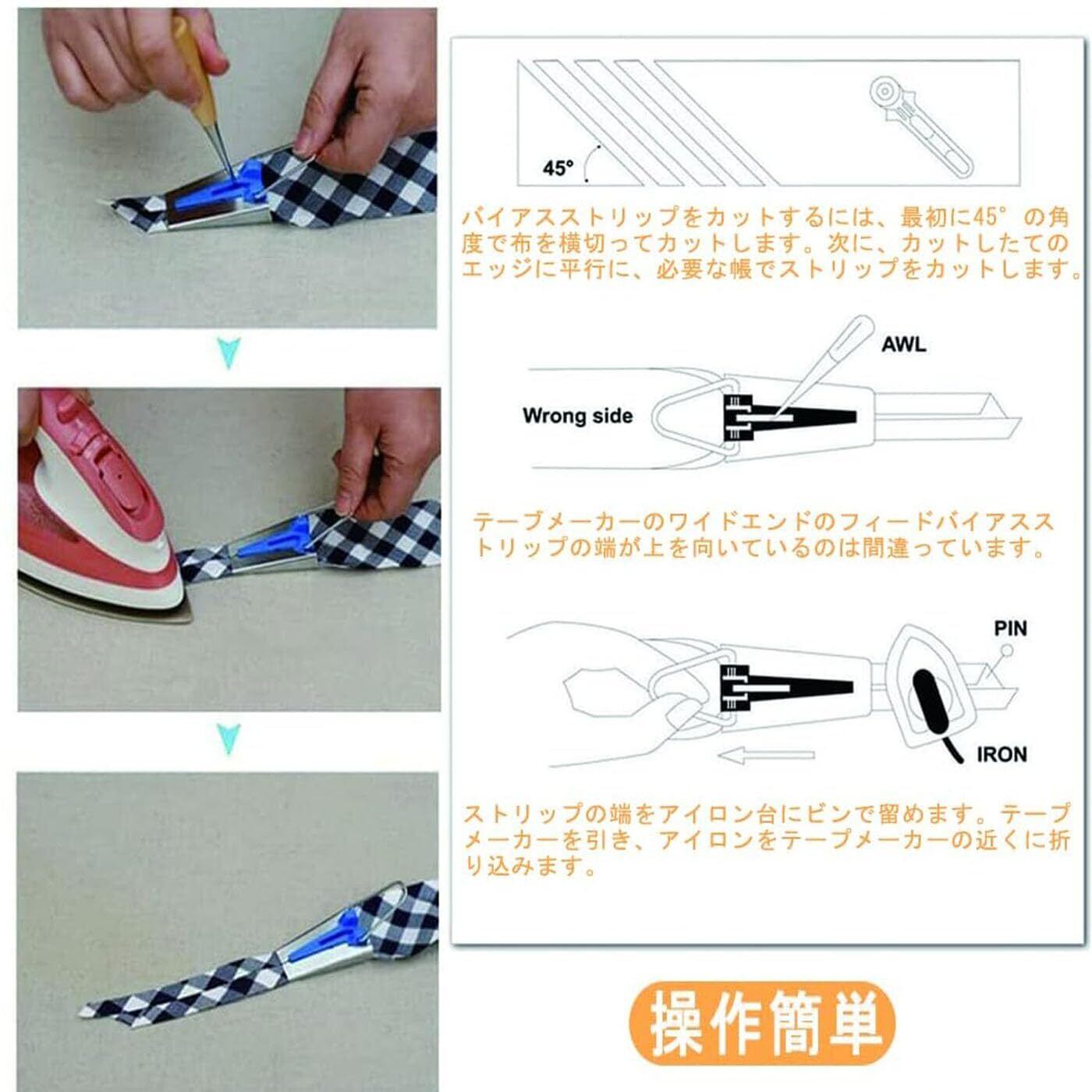 バイアステープ かんたん作成 テープメーカー 簡単手作り 衿ぐりのパイピング始末 (5サイズセット)
