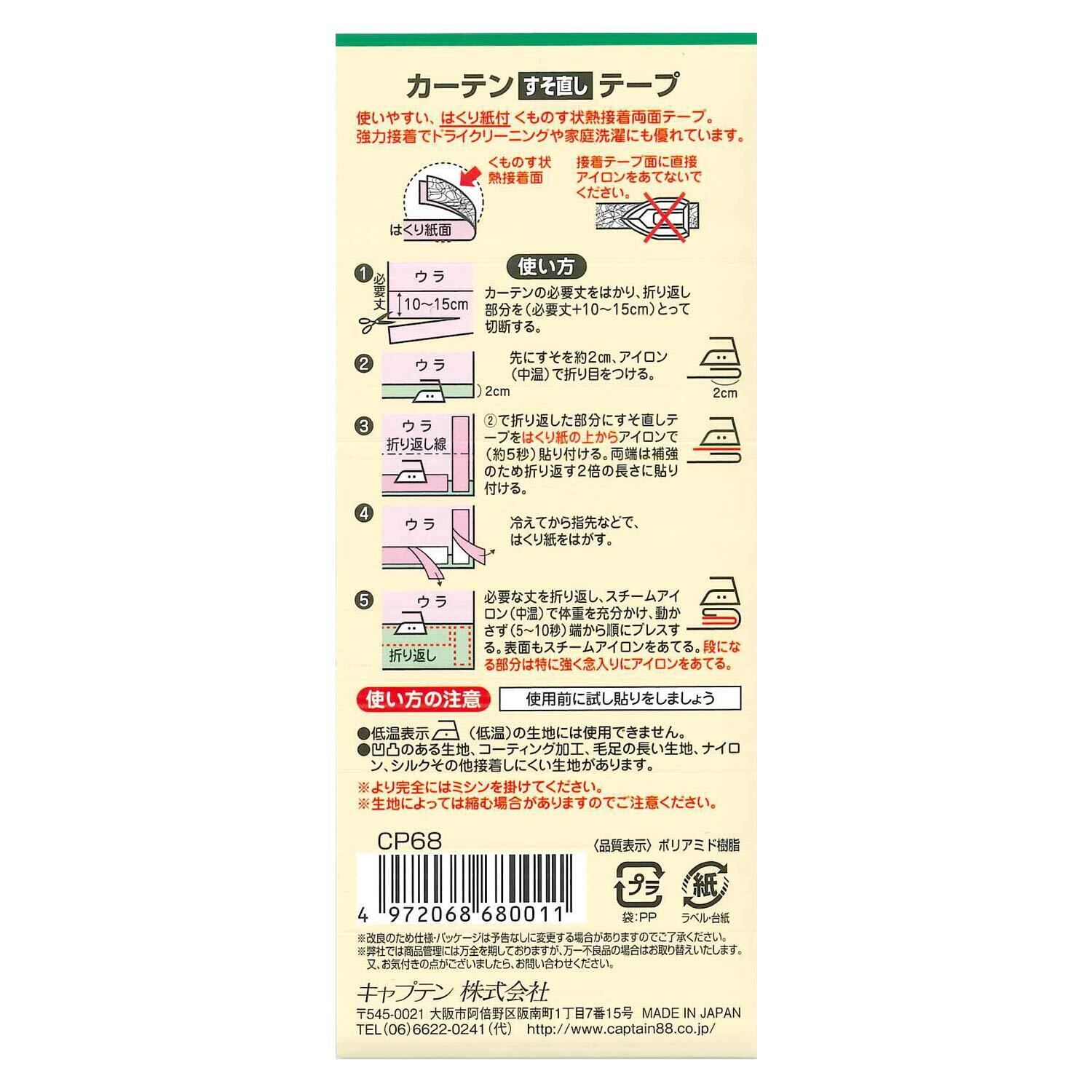 CAPTAIN88 キャプテン カーテンすそ直しテープ 巾45mm×2m巻 アイロン接着 CP68