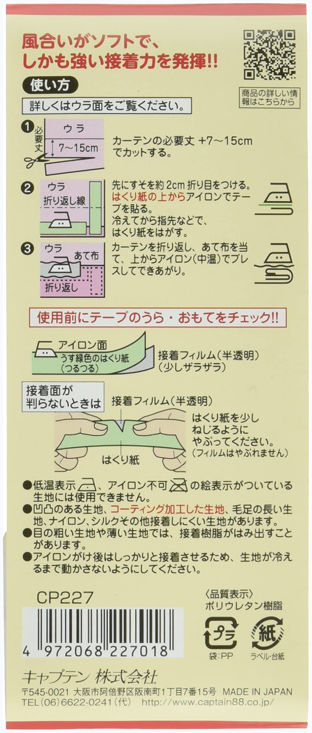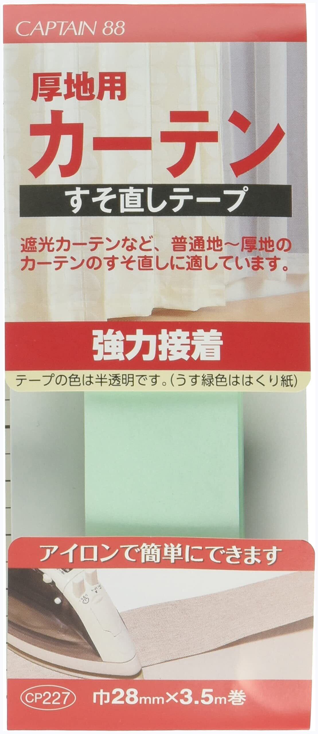 【人気商品】キャプテン CAPTAIN88 すそあげテープシリーズ 厚地用カーテンすそ直しテープ 強力接着 幅28mm×長さ3.5m CP227 半透明