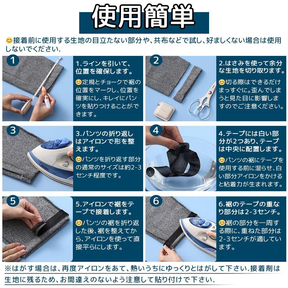 【水洗い可能で安心の選択】裾に裾上げテープを貼っておけば、洗濯機やドライクリーニングも安心です。家庭のお母さんは、服のサイズが合わないときに備えて買うことがあります。緊急時に安心できる可能性があります。裾上げテープをアップグレードし、使用の多様化と高い粘着力を実現しました。