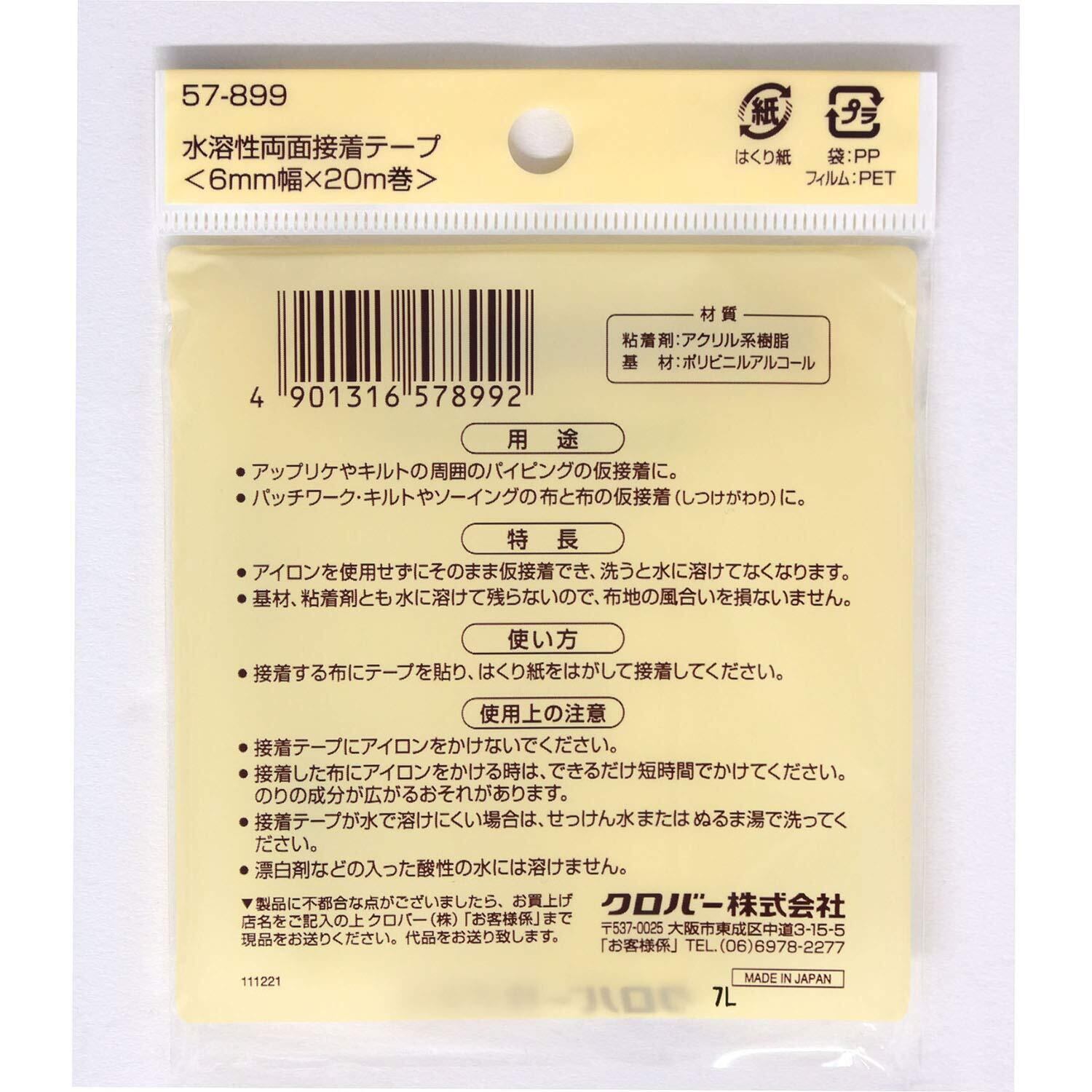 【特価セール】Clover 水溶性両面接着テープ6mm 57-899