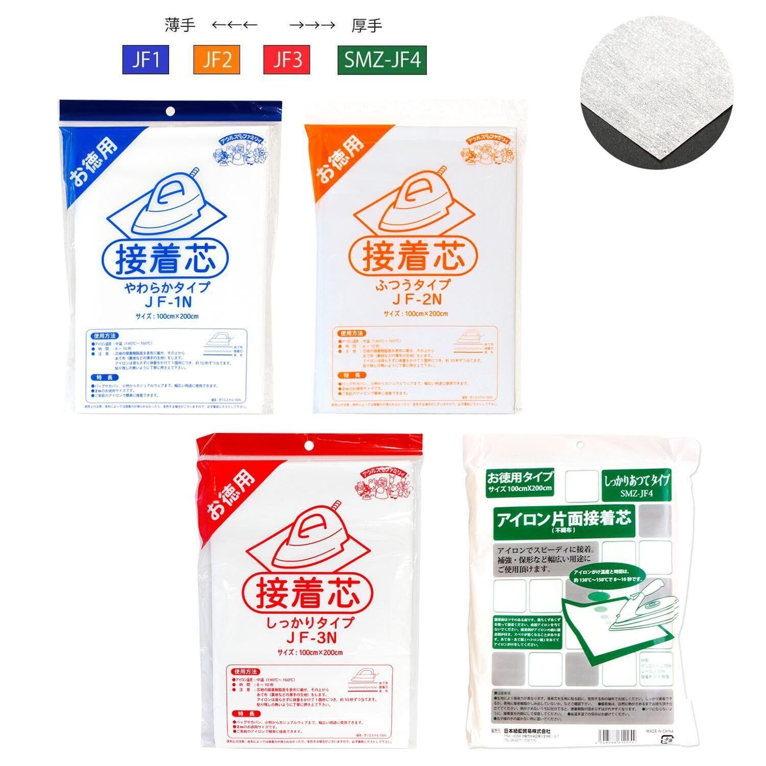 ※2021年1月より「JF1 やわらかタイプ」が、メーカー在庫がなくなり次第、従来品と組成混率が変わります。従来品比として風合いは基本的に同等品質のままで接着力が向上、特に水洗い後の接着力が改善されます。 変更点)組成