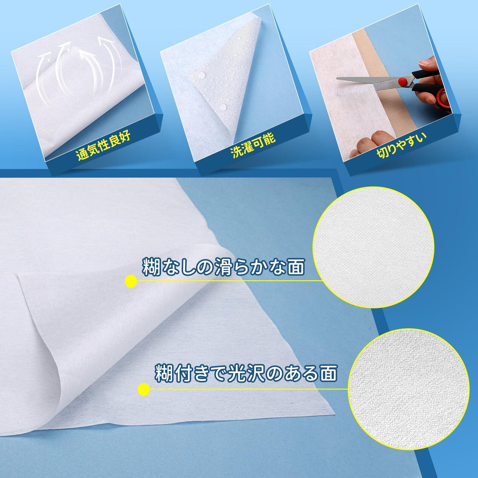 最高級素材:不織布タイプは生地に膨らみを与えることなく構造感を与え、生地のハリを保ちながらシワや伸びを防ぎます。剥がれたり泡立ったりすることなく、繰り返し洗濯に耐えます。シャツの前立て、デニムのポケット、カーテンのプレースマットなど、硬めの生地に最適です