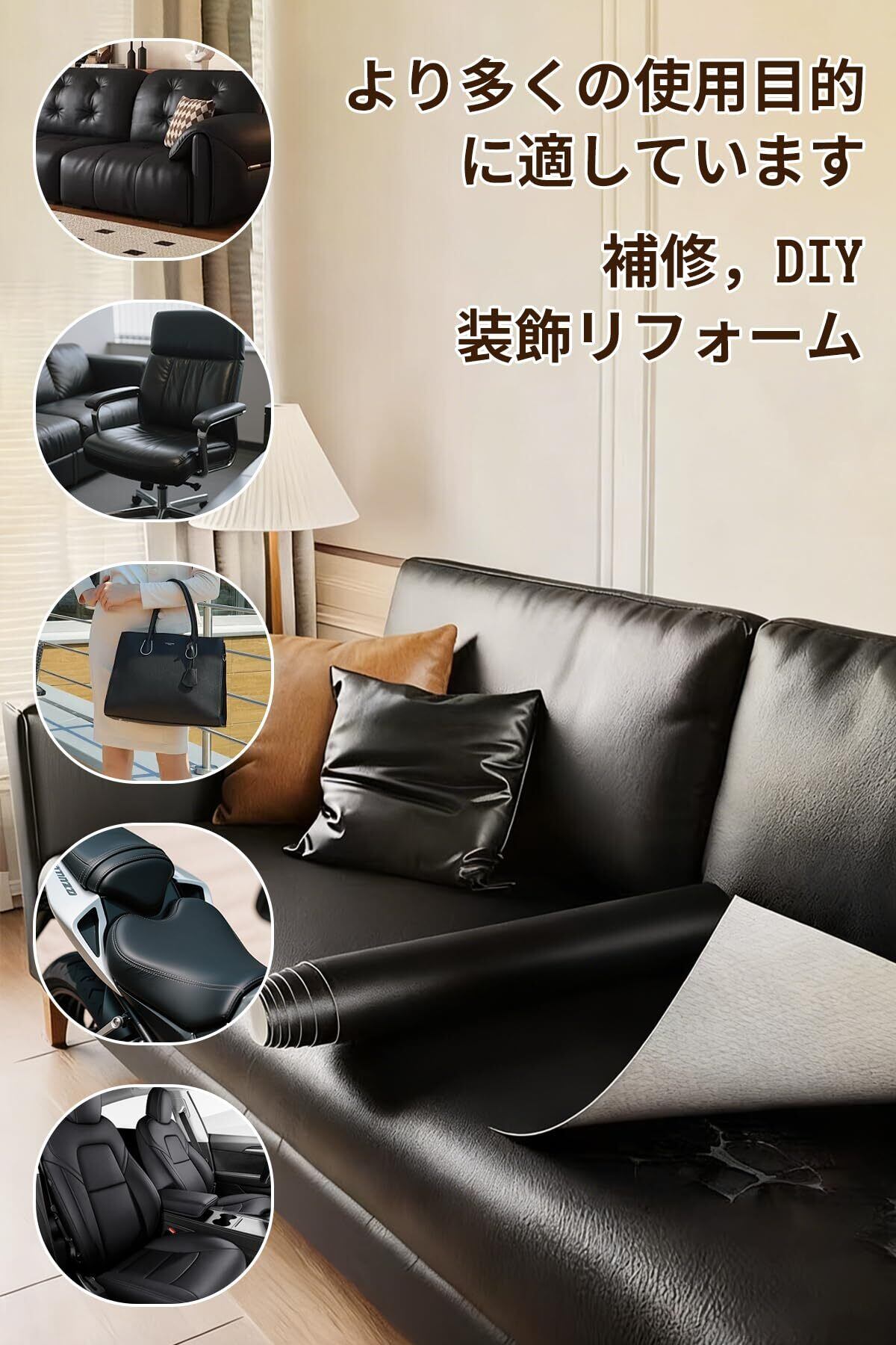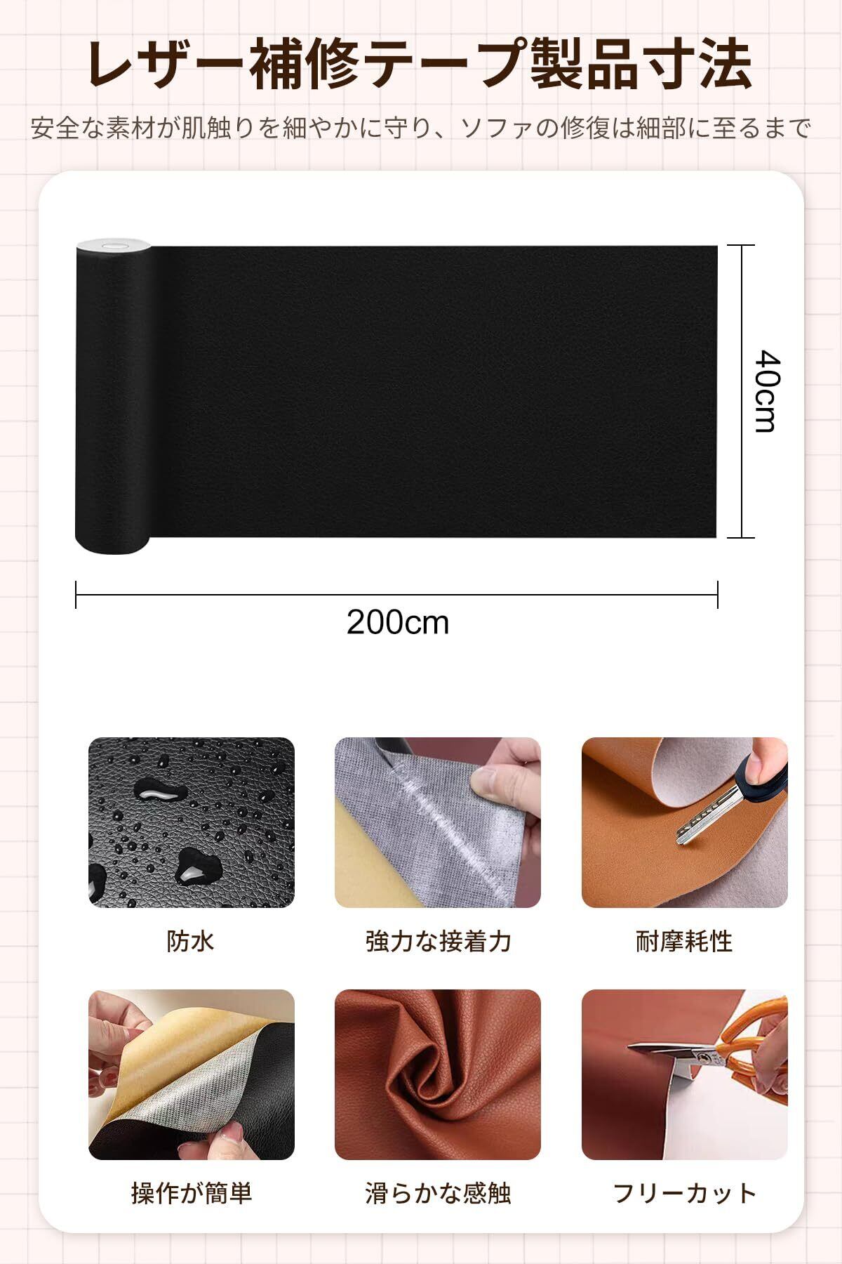 【新着商品】PJTL 合皮補修シート 40*200cm PVCレザー粘着パッチ ソファー 車シート ハンドバッグ 家具の傷補修対応(40*200cm,ブラック)