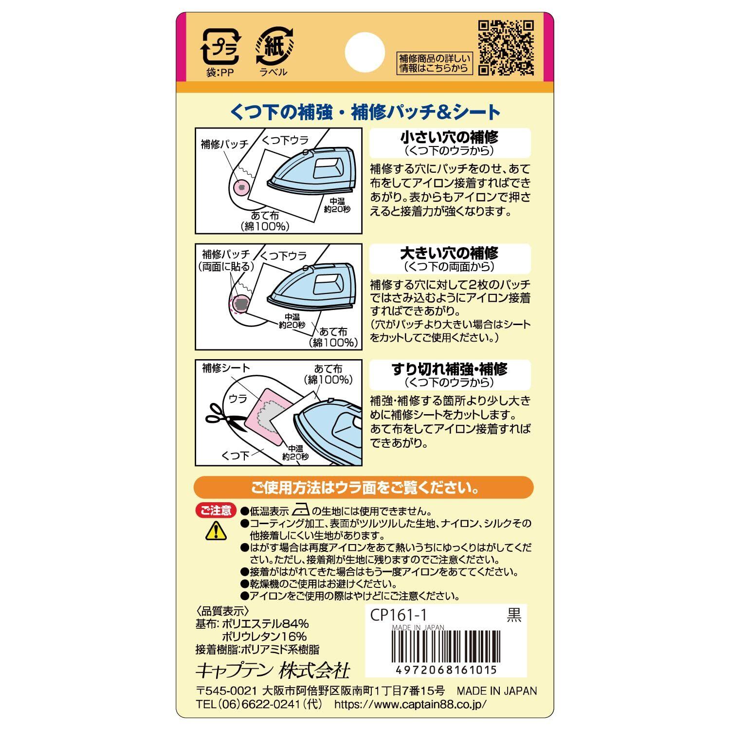 【数量限定】CAPTAIN88 キャプテン 簡単 補修シリーズ くつ下の補強・補修 パッチ (直径3cm)& シート (6.5cm×20cm) #1 黒 CP161