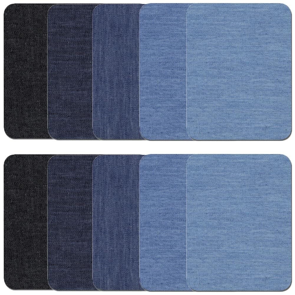 【2022最新】デニムパッチ 補修パッチ アイロンパッチ 長方形 約9.5cm×12.5cm 5色10枚セット ジーンズ リペア 補修布 デニム 補修シート アイロン接着 貼付パッチ 布製 衣類 服の補修に DIY 手芸 自由に切り取れる