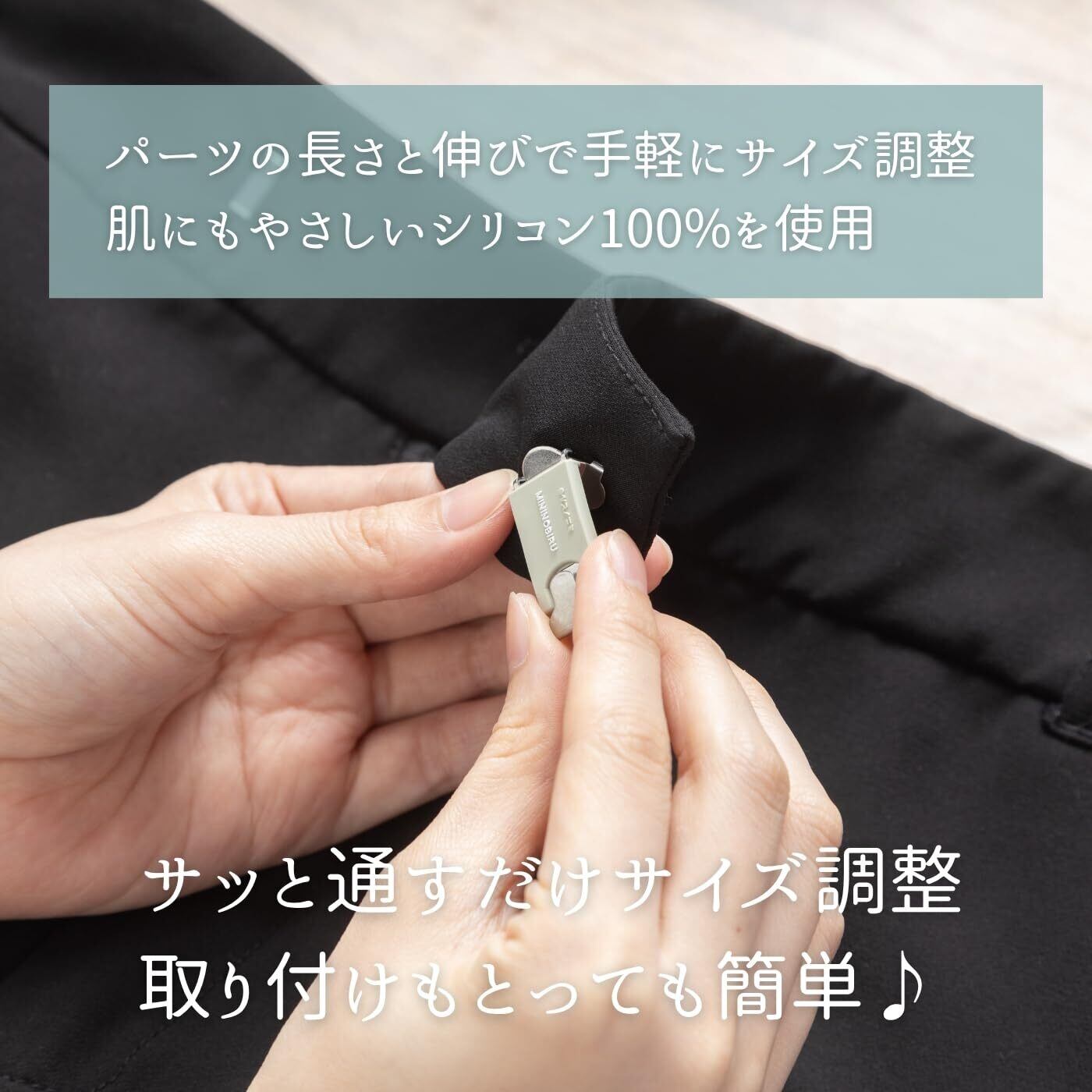ウエストがきつくてホックが閉まらない・・・ そんな時は、ミニノビルで約4cmウエスト回りを大きくできます。 糸・針は一切使用せず、お手持ちのズボンやスカートの前カンに取り付けるだけで、簡単にサイズ調整ができる便利アイテムです スラックスはもちろん!スカート・学生服・事務服・作業着などのウエスト回りのお悩みをワンタッチで解決させます ウエストに余裕ができてとっても楽ですよ 素材は、肌にやさしいシリコンを使用しております。