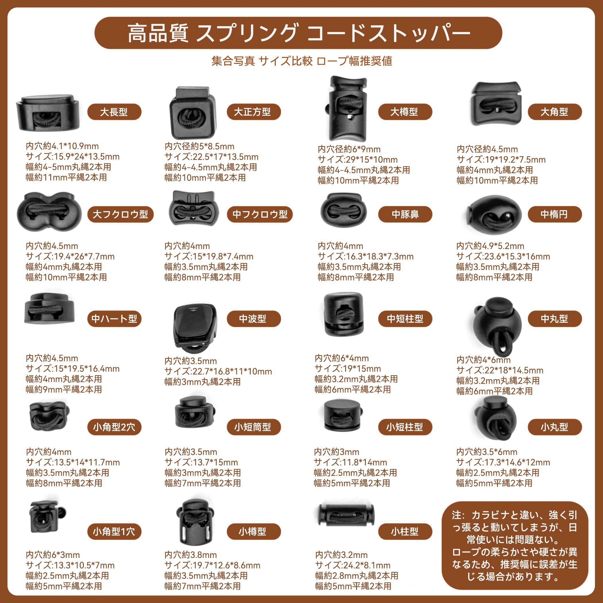 ドローコード スプリングコードストッパー 1つ穴 10.9mm 巾着 コードロック バンジーコード トグルストッパー パラコード 紐止め 平 紐 ストッパー 大長型 12個 B14306 ブラック