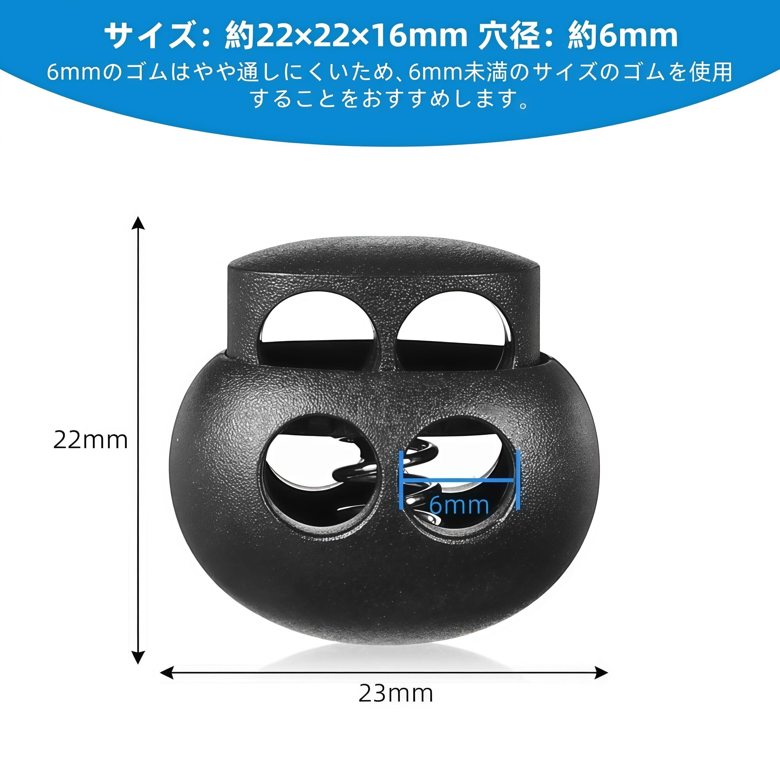 【新春セール】スプリングコードストッパー トッパー ドローコード 2つ穴 丸型 穴径約6mm 黒 10個入り 紐止め コードロック トグルストッパー スポーツウェア用 プラスチックパーツ 多用途 紐用ゴム スプリング紐止め 交換 補修用 ブラック プラスチック