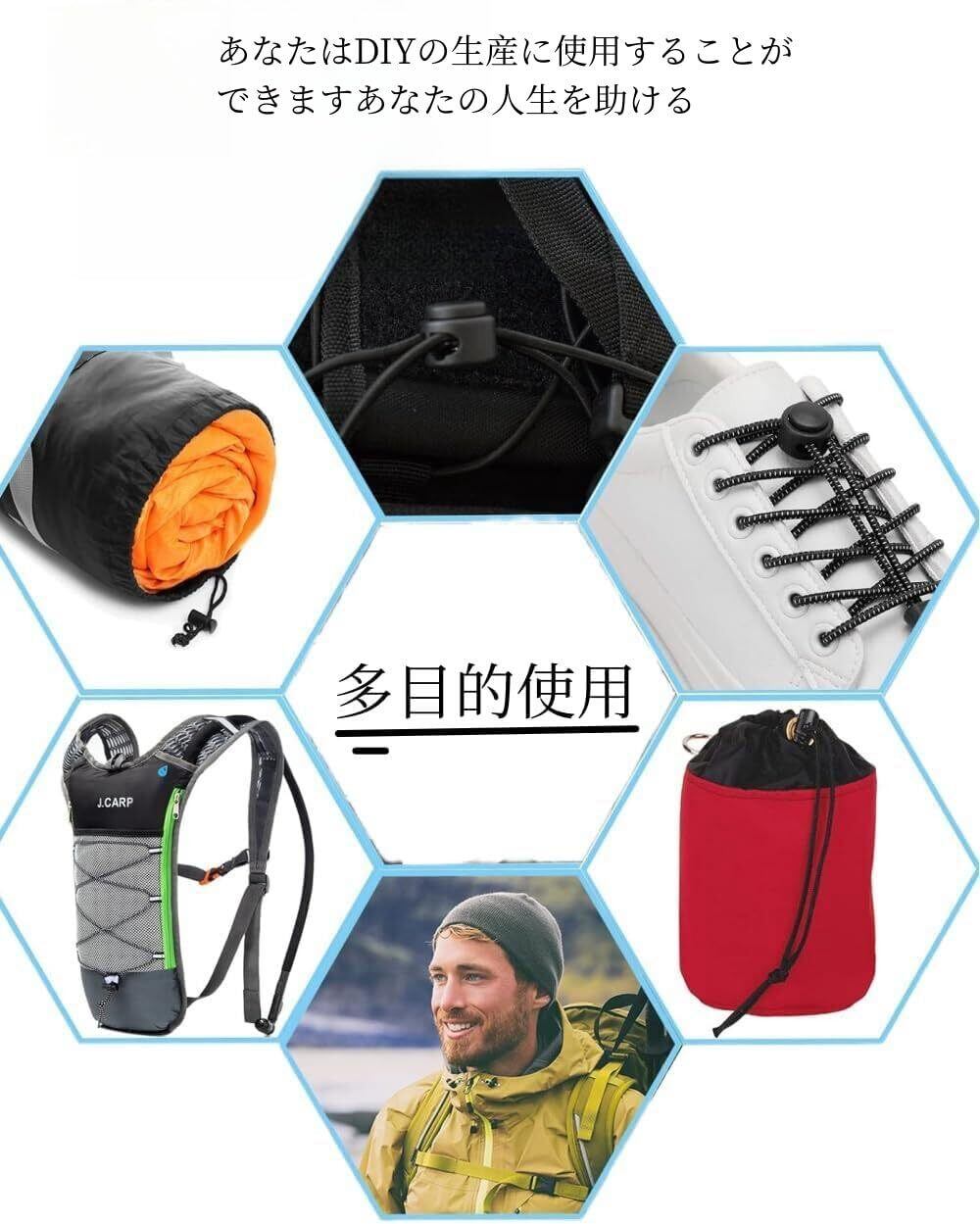 【用途】荷物、衣服、バックパック、スポーツウェア、靴ひも、テントなどの損傷したコードロックを交換するために使用されます。
