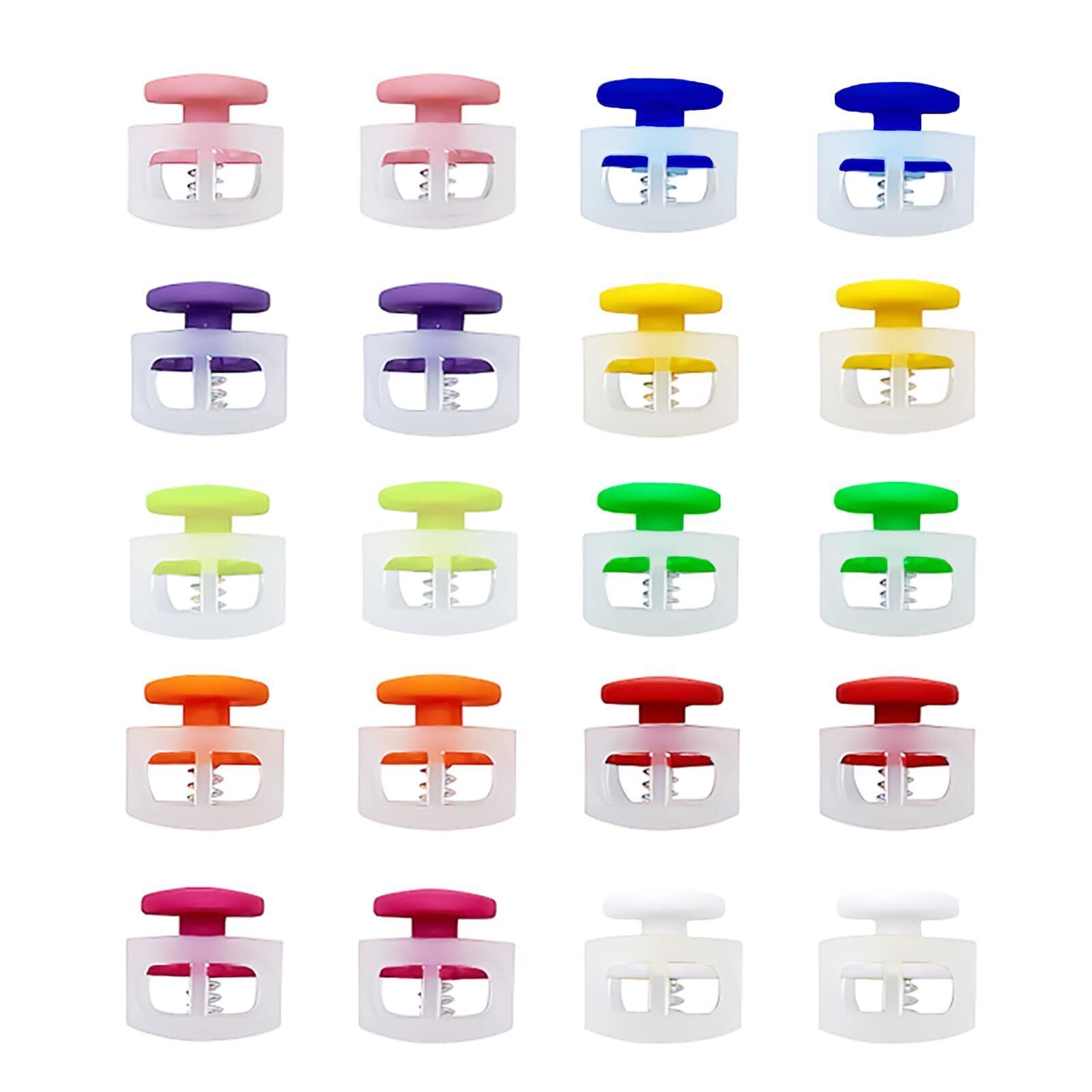 スプリングコードストッパー 2穴 プラスチック 軽量 可愛い カラフル コードストッパー 靴紐 留め具 押し式スプリングバックル 紐止め 交換 補修用 DIY 手芸 荷物 衣服 靴ひも ストラップ 帽子用 ハンドメイド材料