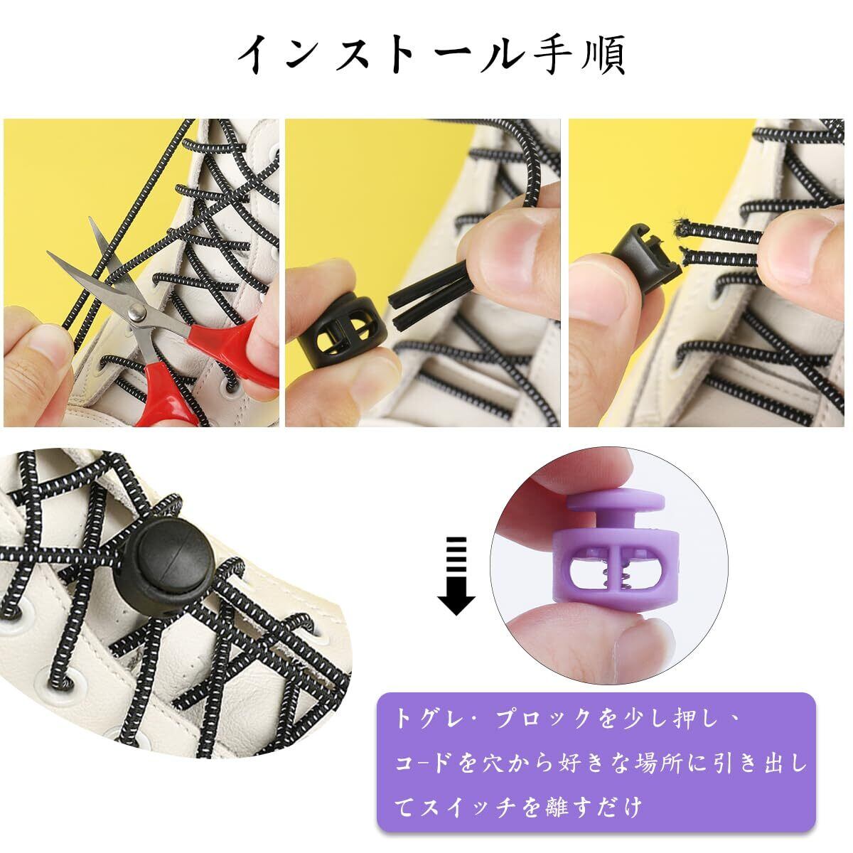 [幅広い用途]紐止め、ボトルカバーの口の部分、ウエストゴムの紐止め、リュックのストッパー、帽子のひもの留め具、巾着袋の開閉補助具など色々使えます。アウトドア場合にも大活躍、テントやリュックサックの括り、スパッツのゴムの予備にと用途が広い。また靴紐、ランヤード、荷物、バックパック など幅広く活用できます。