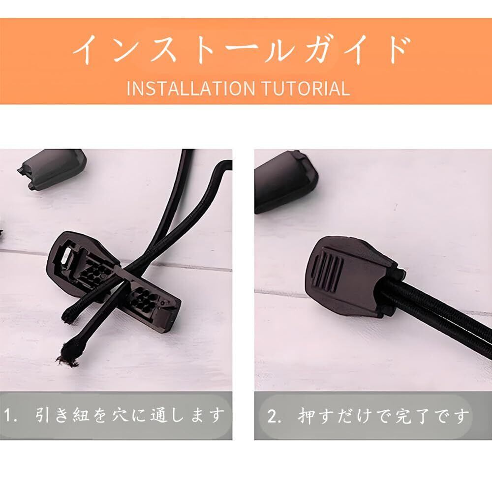 【装着方法】1、紐の先端を揃えます。2、穴に紐を通します。3、しっかりと挟み込みます。