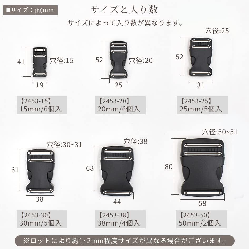 MYmama ワンタッチ バックル ブラック 差し込み サイド リリース バックル 長さ 調節 樹脂 パーツ (25mm/5個入)