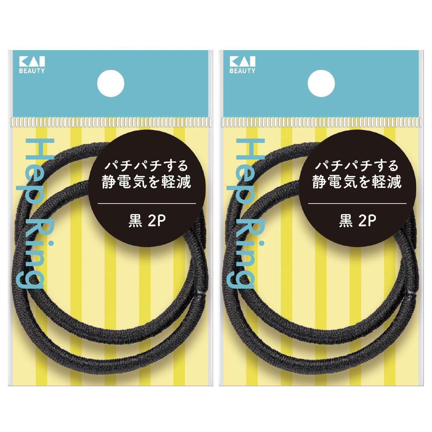 貝印 ヘアゴム 静電気 軽減 ヘップリング バンド 黒 2P × 2個 セット KQ0022