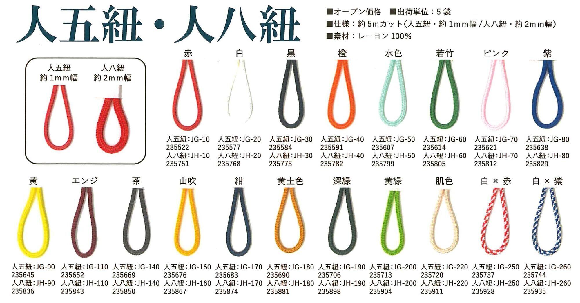 【人気商品】タカギ繊維 Panami 人八紐 約2mm幅 約5mカット 白 JH- 20 レーヨン100%