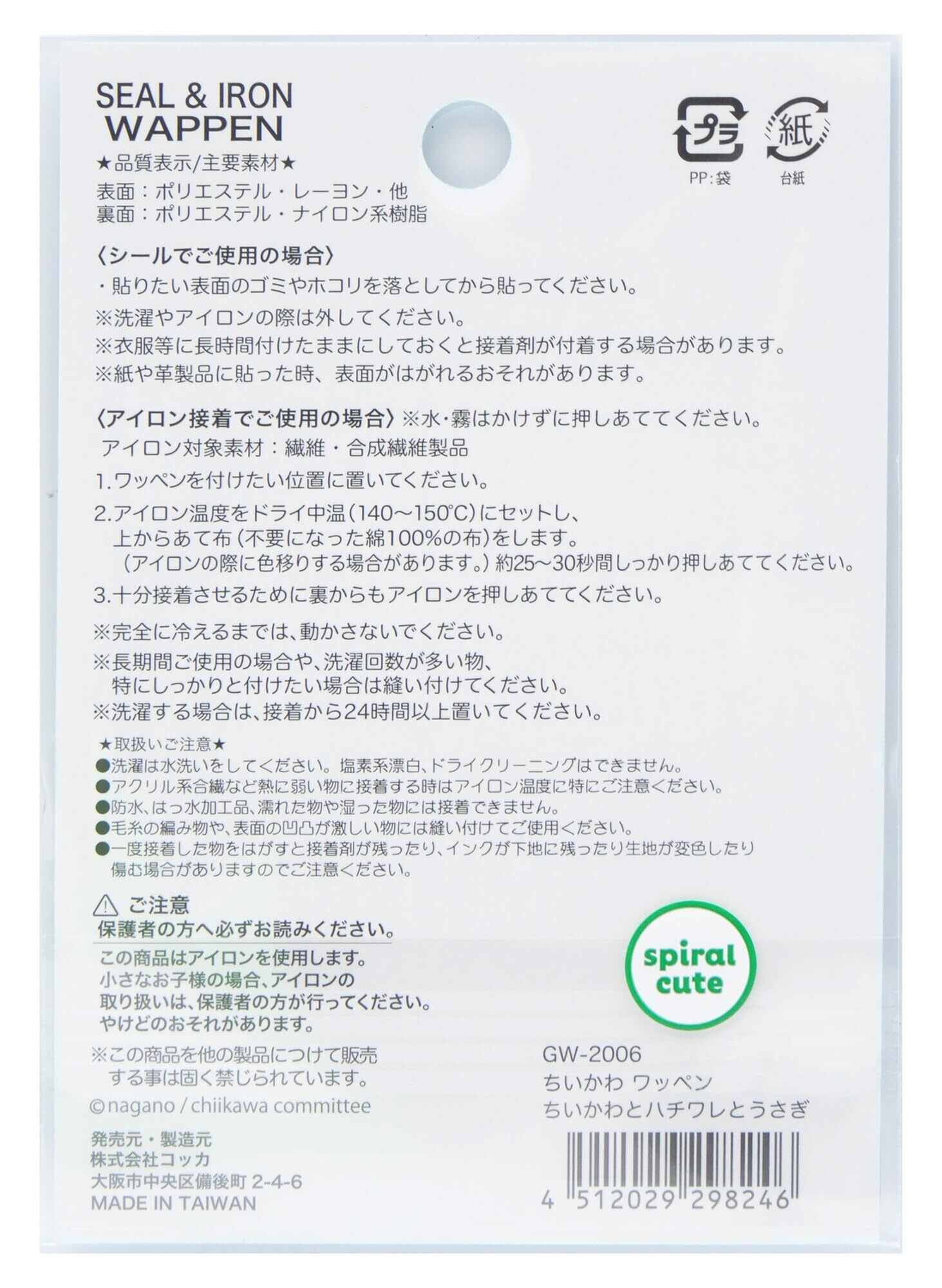 コッカ(kokka) ちいかわ ワッペン ハチワレ・ちいかわ・うさぎ 1枚 幅66mm×高さ35mm シール・アイロン 両用接着 GW-2006