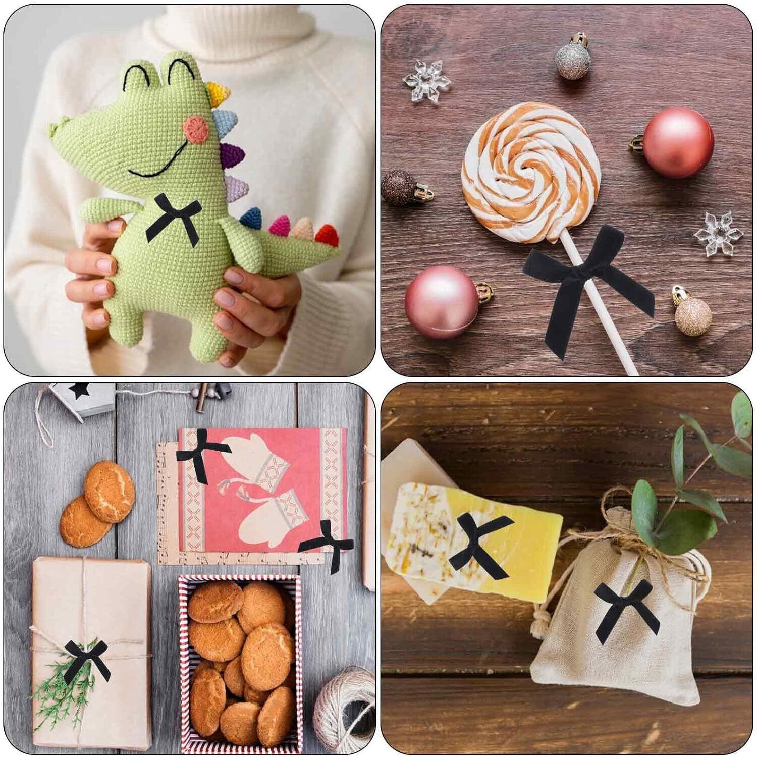 1. プロジェクトやギフト包装紙に合うミニリボンボウの色を選択します。2. (ここに含まれていない)ツイス トタイ(または接着剤)を使用して、ギフトボックス、カード、またはクラフトなどの好きな表面にミニリボンボウを固定します。3. 必要に応じてリボンの位置を調整して、好きな外観を得ます。