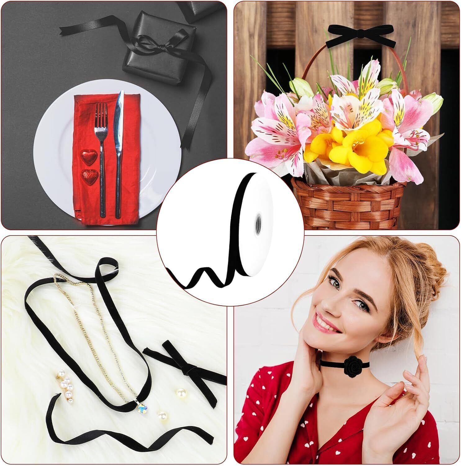 【幅広い用途】ベルベットリボンは結婚式や誕生日パーティー、卒業式、イースター、ハロウィン、ホームデコレーションなどで広く使用されています。イヤリングの装飾、DIYのハンギングデコレーション、衣類の装飾リボン、編み込みヘッドバンド、ギフトパッケージ、招待状やキャンディーボックスのリボン、ギフトボックスのラッピング、衣類のアクセサリー装飾に使用できます。