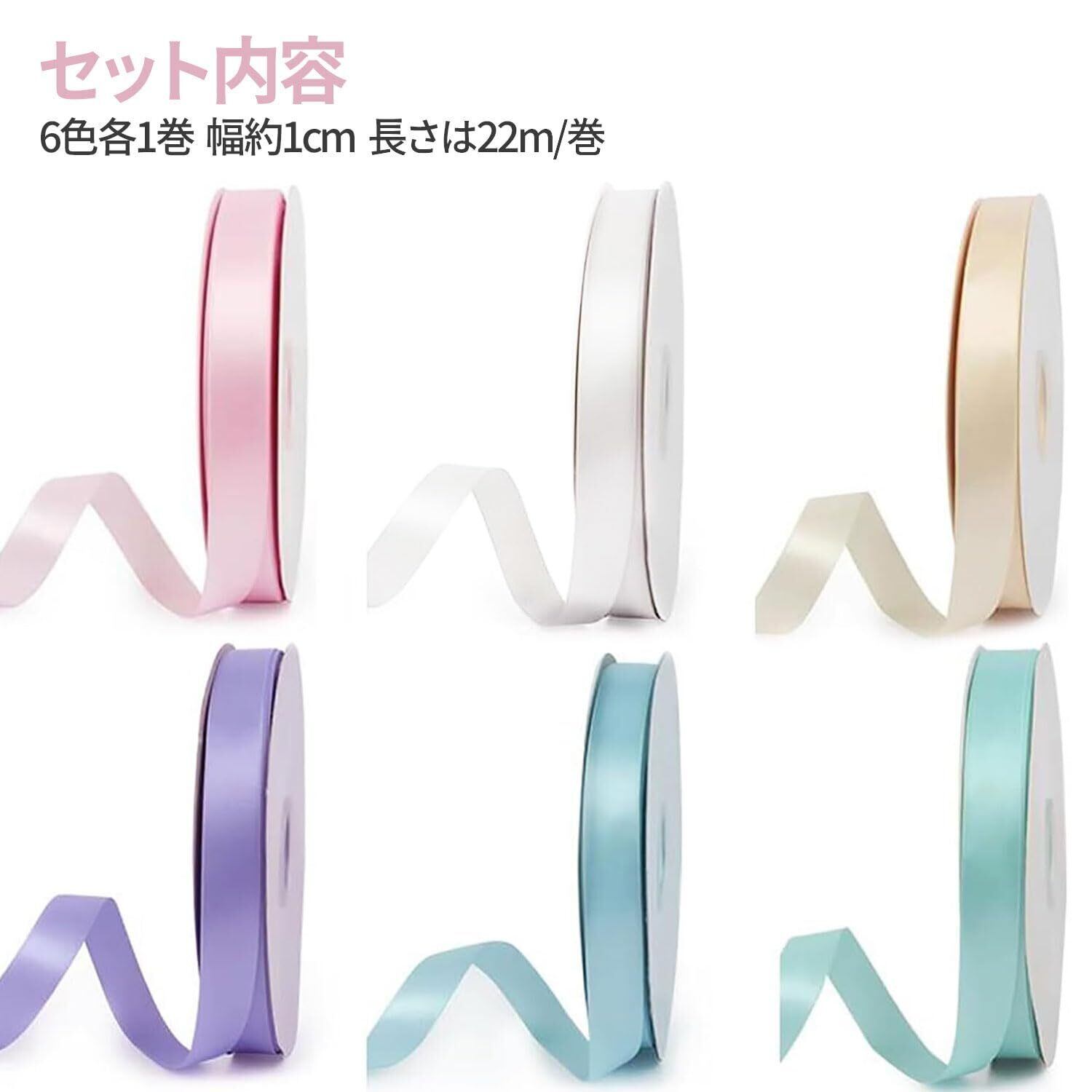 【特価商品】リボン 6色セット10mm 包装 サテンリボン カーリングリボン 贈り物 クラフト包装花材手作りの装飾素敵なギフトリボン