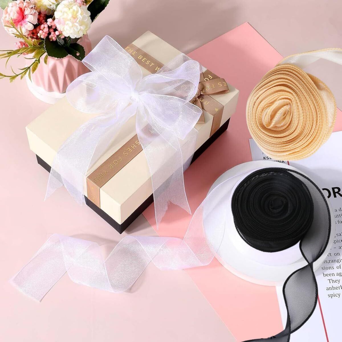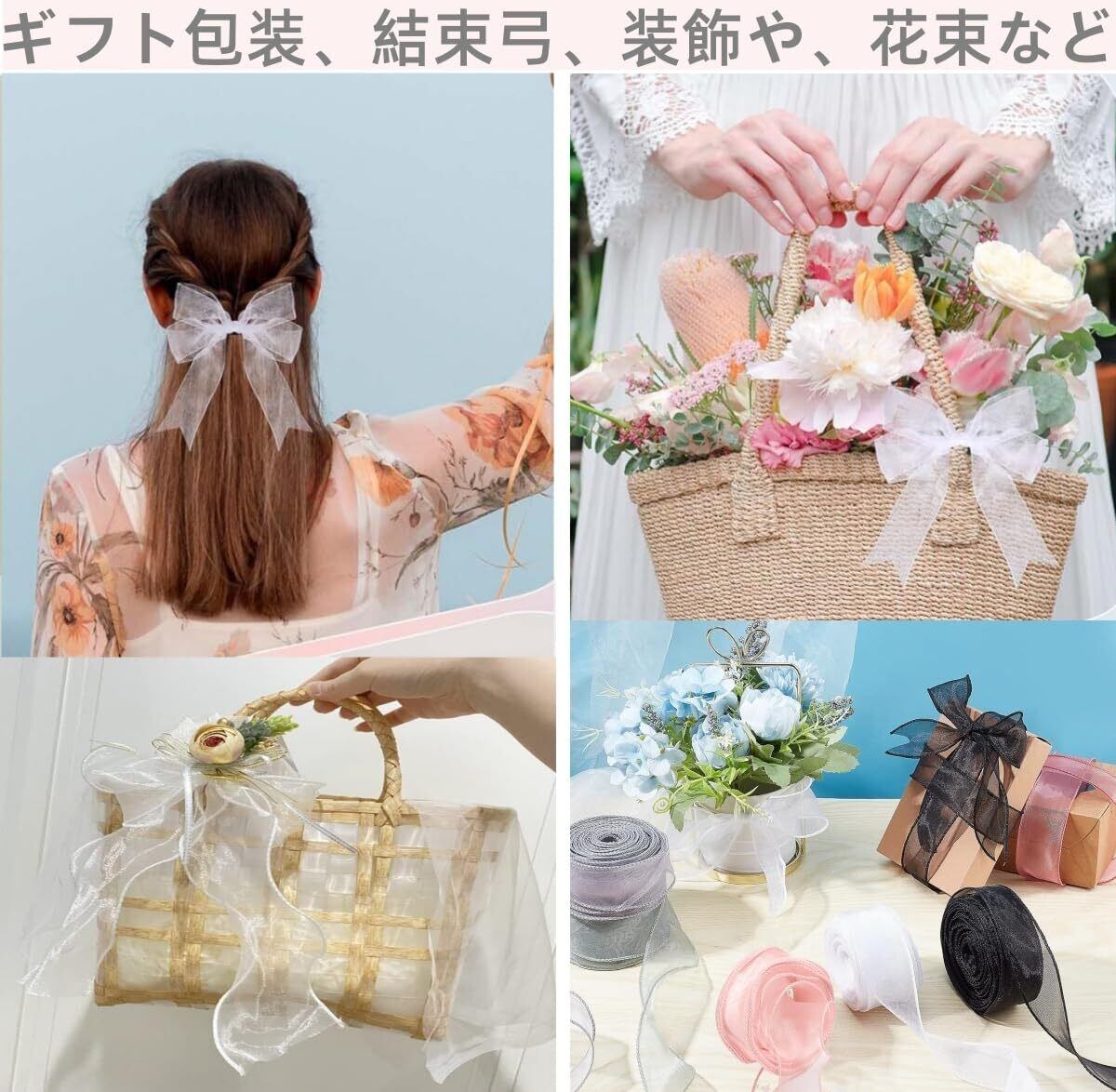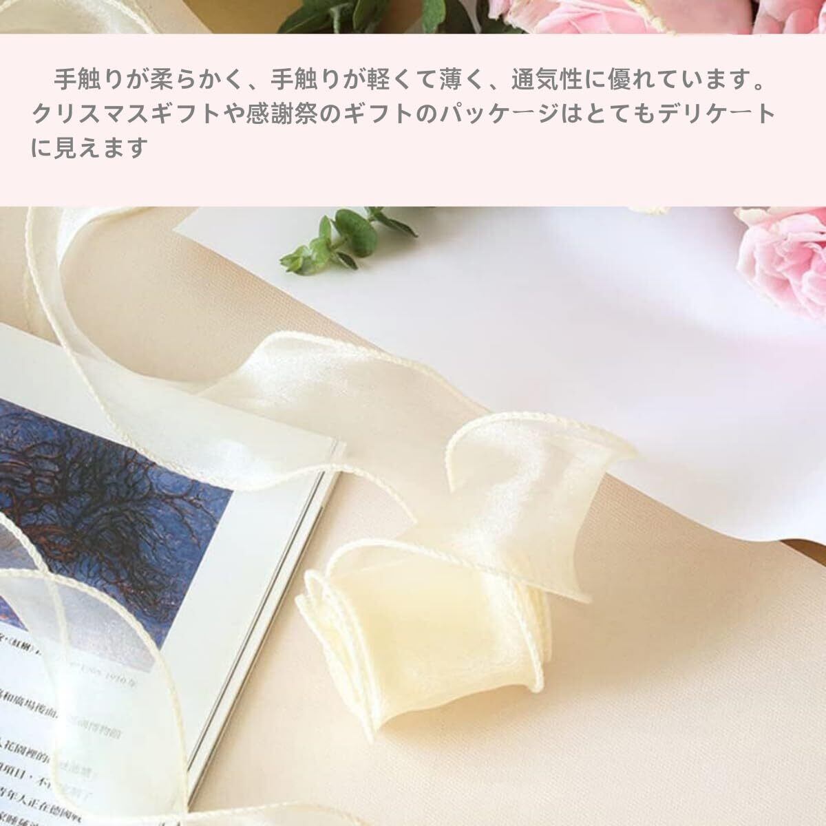 【商品仕様】オーガンジーリボン3巻入り、サイズ: 長さ約9m ×幅 4cm。