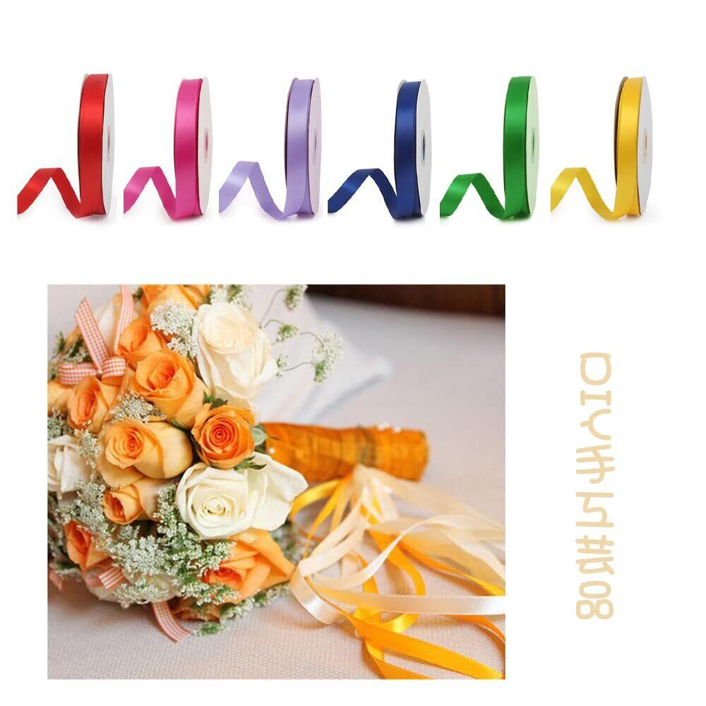 YFFSFDC サテンリボン 6色セット 幅10mm 手芸 ラッピング 花材 手作り 装飾 可愛い ギフト用 ちょう結び 包装 (A)