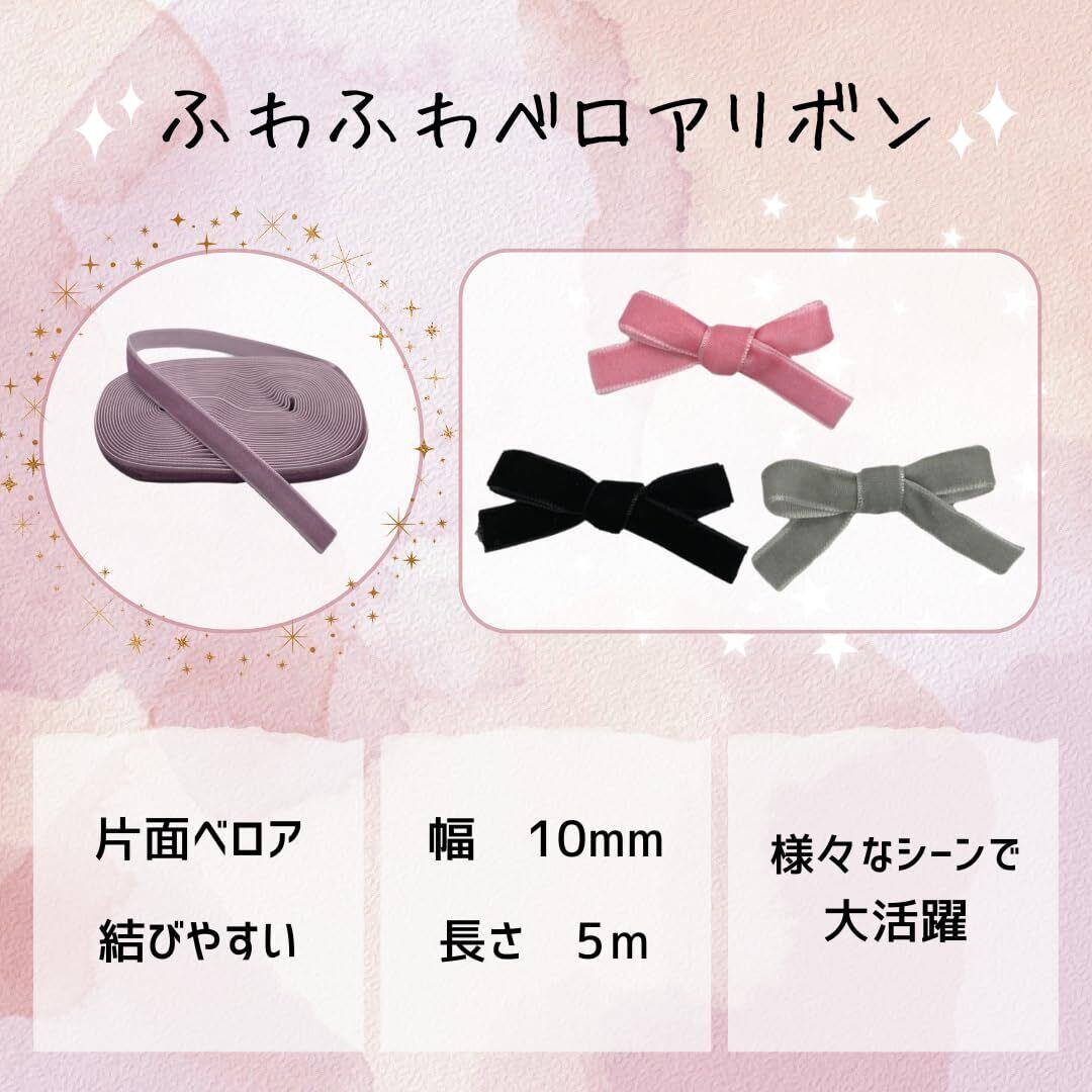ベロア リボン ベルベット 10mm幅 長さ5メートル 手芸 結婚式 (パープル)