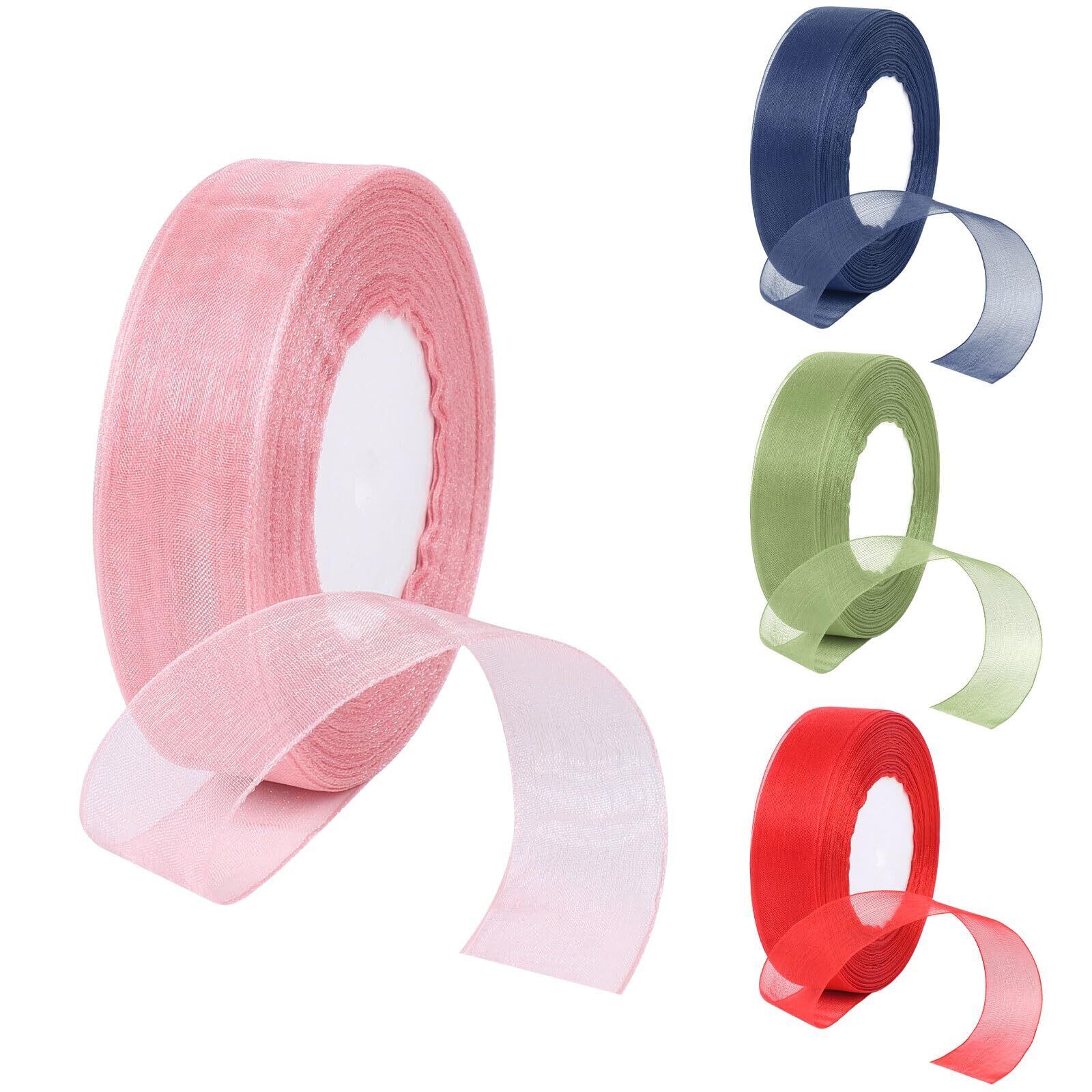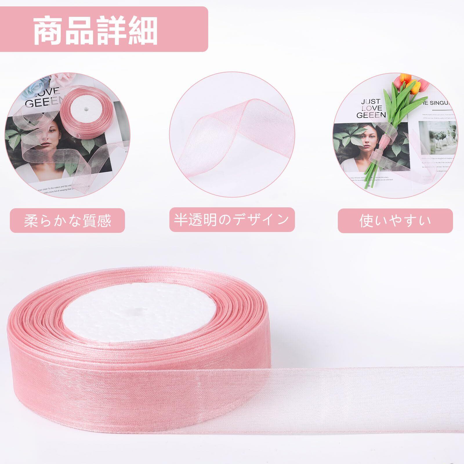 CCINEE リボン オーガンジー ribbon 幅25mm 長さ45M ギフト ラッピング 無地 透け感 手作り 誕生日 結婚式 バレンタイン 花材 ヘアリボン (オーガンジー ピンク)