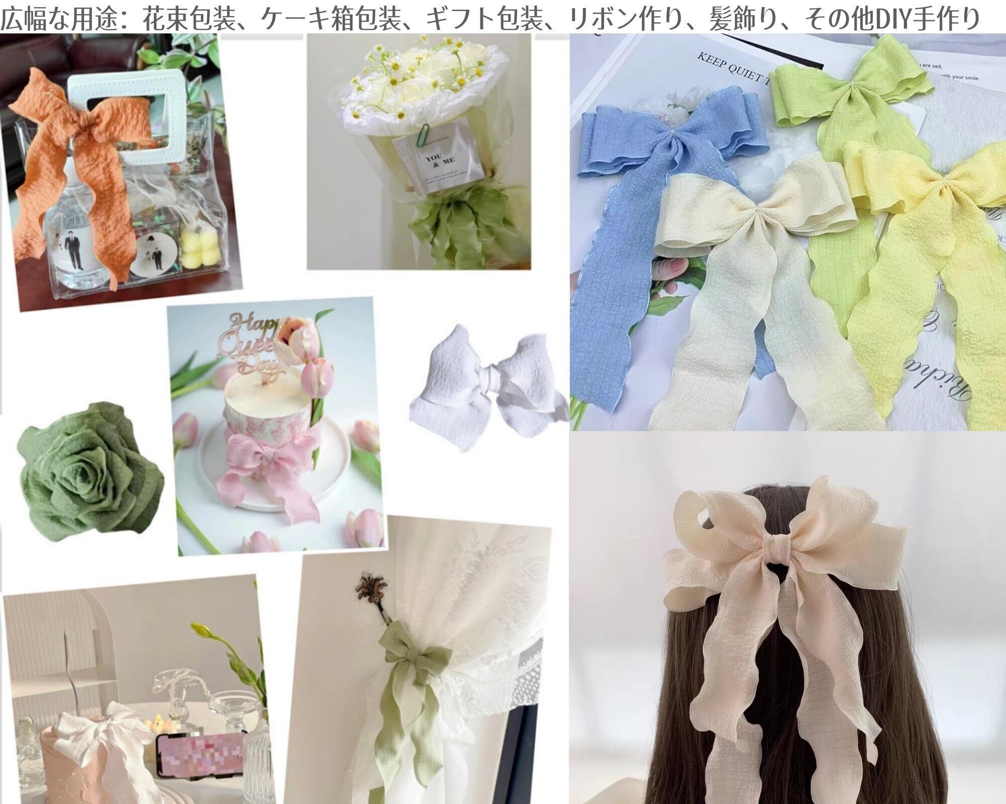 【美しい装飾】: これらの柔らかいリボンは、花の弓を作るなど、かわいいと魅力的な装飾を作り、リース、階段、木、プレゼントバスケットに配置することができます、そして、結婚式用で使う花束やブーケのリボンとして、またウエディングのコーディネートやヘアアレンジ用のアクセサリーとしても使いやすい素材となっております。