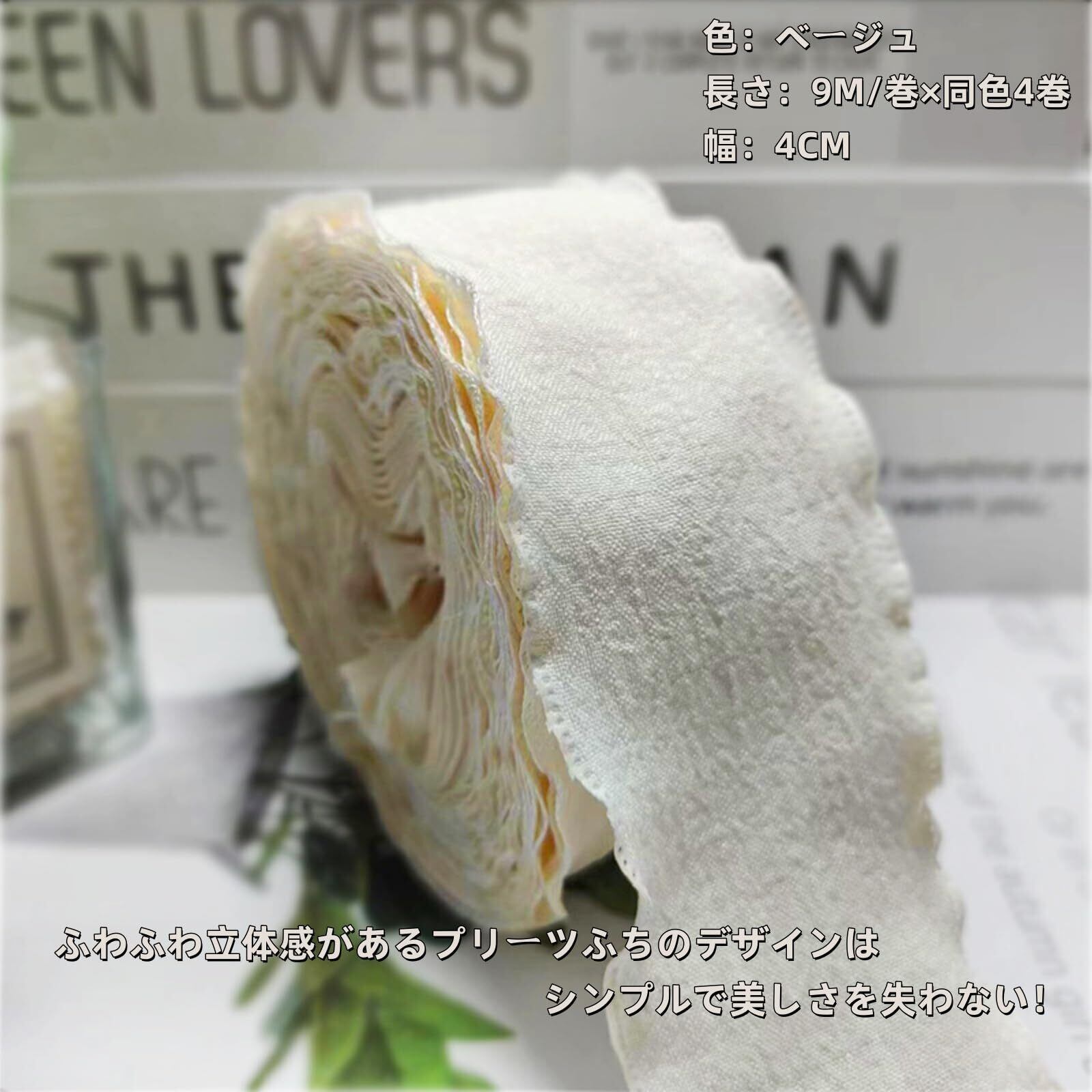 11色リボン 4巻長さ36m 柔らかくてふわふわ立体感じ波ふちのリボン ギフトラッピング豊富なマルチカラー包装用 花束 手芸 服飾 結婚式 DIY 誕生日 成人式 パーティー 用 飾り (ベージュ-4巻)
