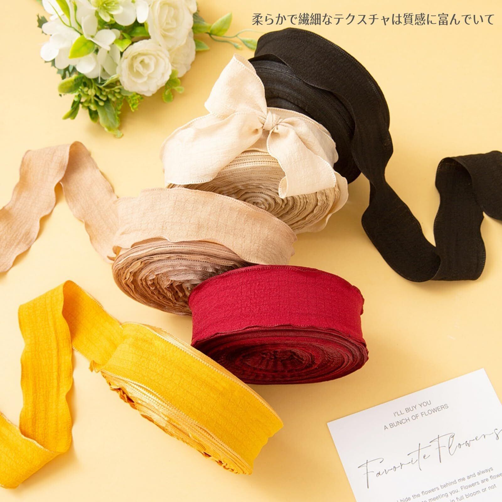 【手作りやDIY】:ウェーブのついたリボンなので結ぶと立体的でボリューム感のある装飾になります。ヘアアクセサリーや小物により豪華さをプラスしたい時にお役立て下さい。