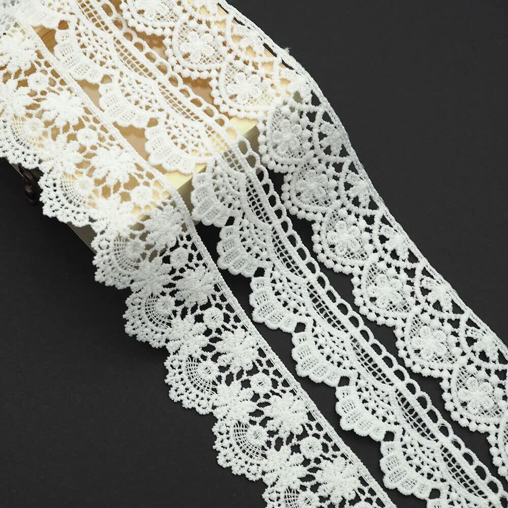 sempiterno 5タイプの流行りのホワイトミニ花柄レース生地 ミルクシルク髪飾り刺繍レース シングル長さ約1m ウェディング糸ホームテキスタイル布地刺繍バーコードDIY補助材料 誕生日 クリスマス ギフト 装飾材料 縫製素材(5タイプアソート)