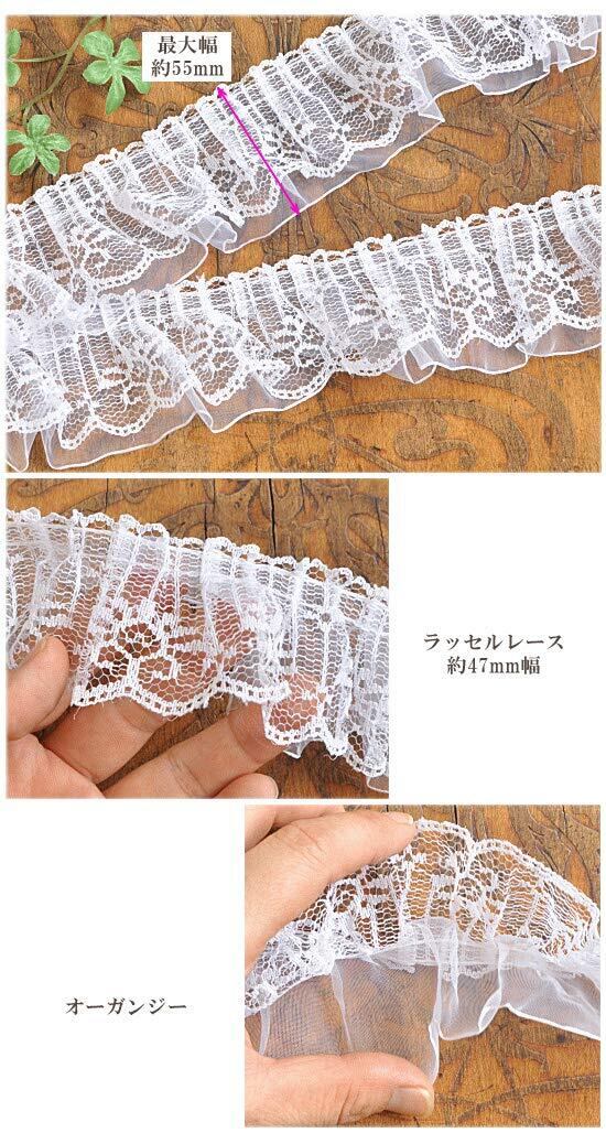 オーガンジーとラッセルレースが2段になったギャザーレース