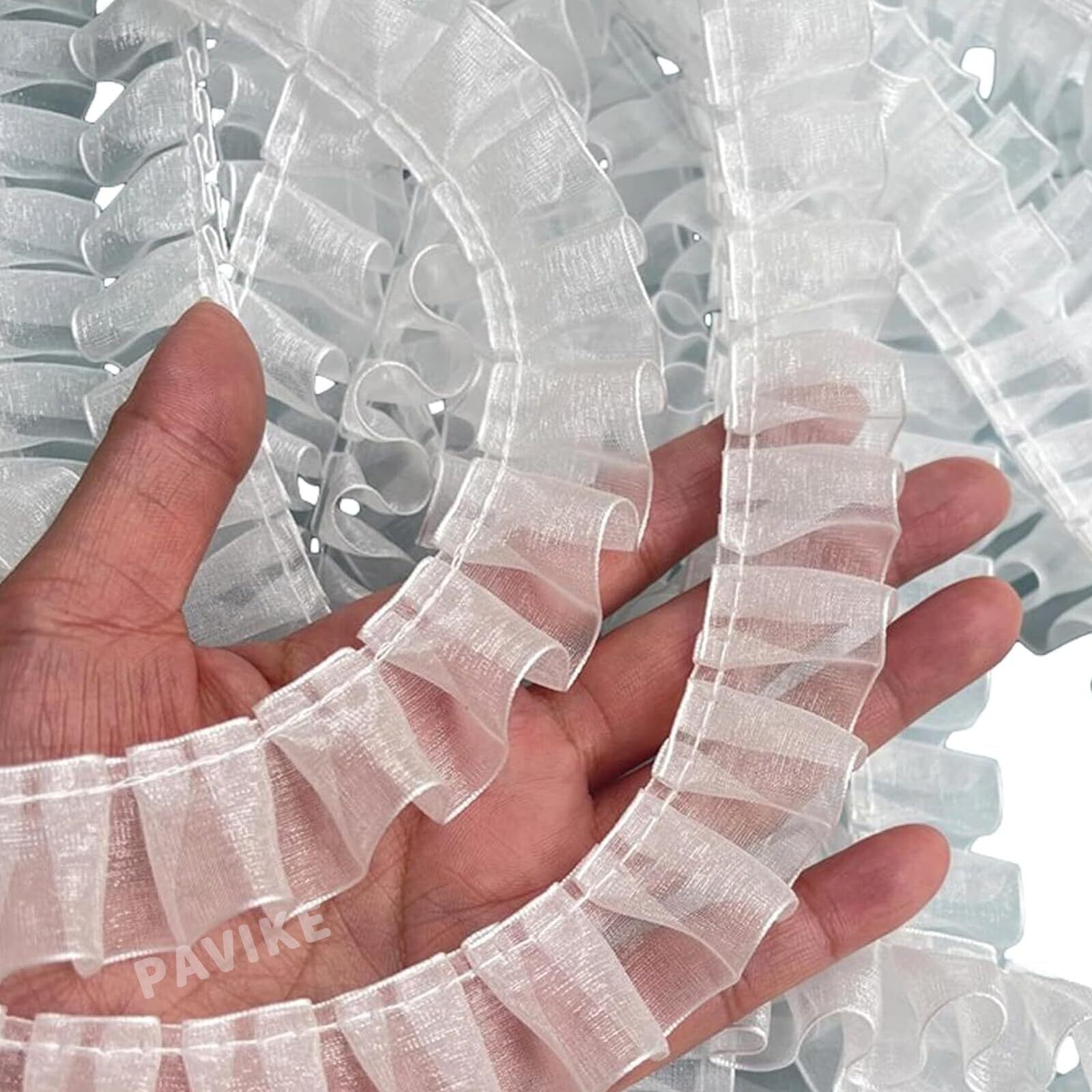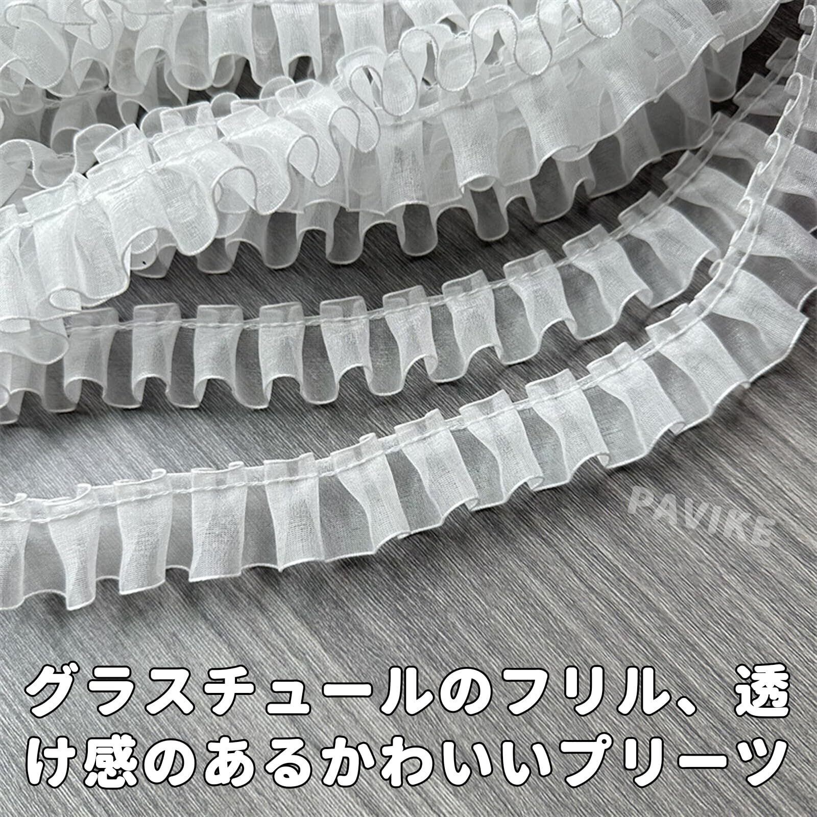 PAVIKE 白いレース リボン 幅2.5cm 長さ4.5m 布団カバーフリル フリルリボン フリルレース 手芸用レース 縫製 DIY用 服装装飾 手作り カーテン、ウェディングドレス、ロリータ、コスプレ、プリンセス、スカートの裾 ハンドメイド素材