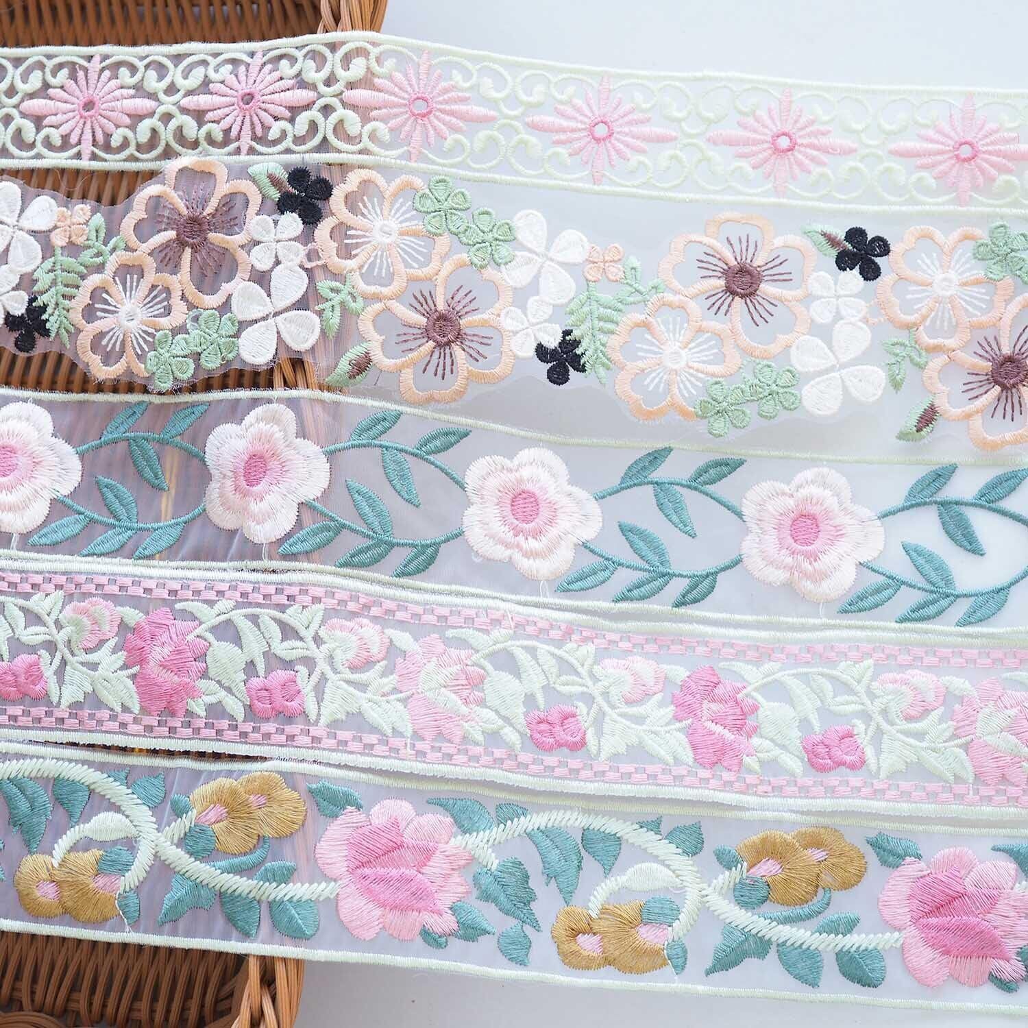【在庫処分】5種類(5m /1 m毎巻) のカラーフラワー装飾レース生地刺繍 DIYハンドメイド、祝いのギフト装飾、裁縫材料、インテリア装飾に使用(カラーミックス)