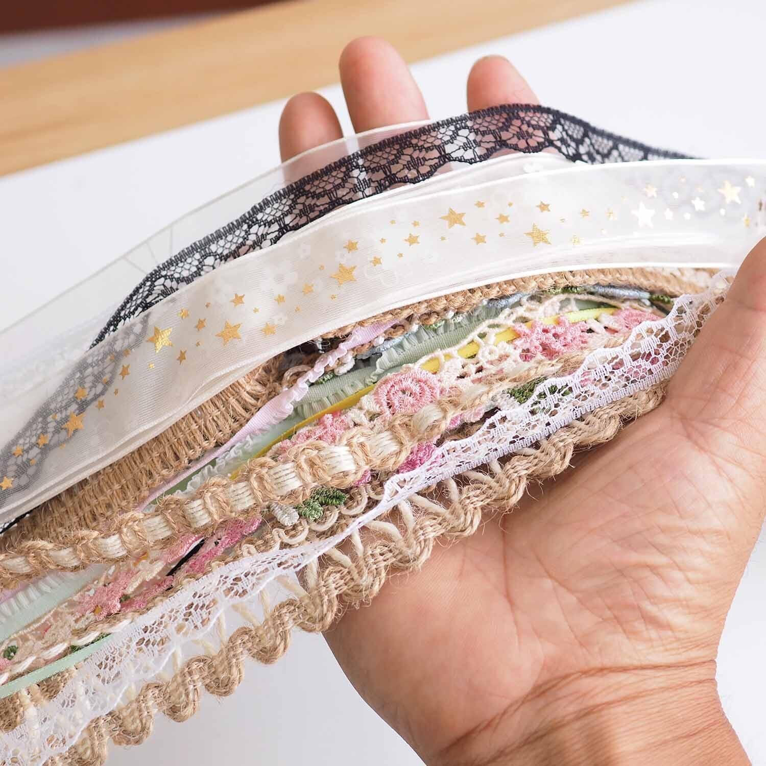 【高品質で使いやすい素材】: このリボンとレースのコンビネーションセットは、すべて高品質な素材で作られています。さまざまなDIYハンドメイド作品にぴったりのクラフト素材で、縫製やカットも簡単です。初心者から上級者まで安心して使えます。