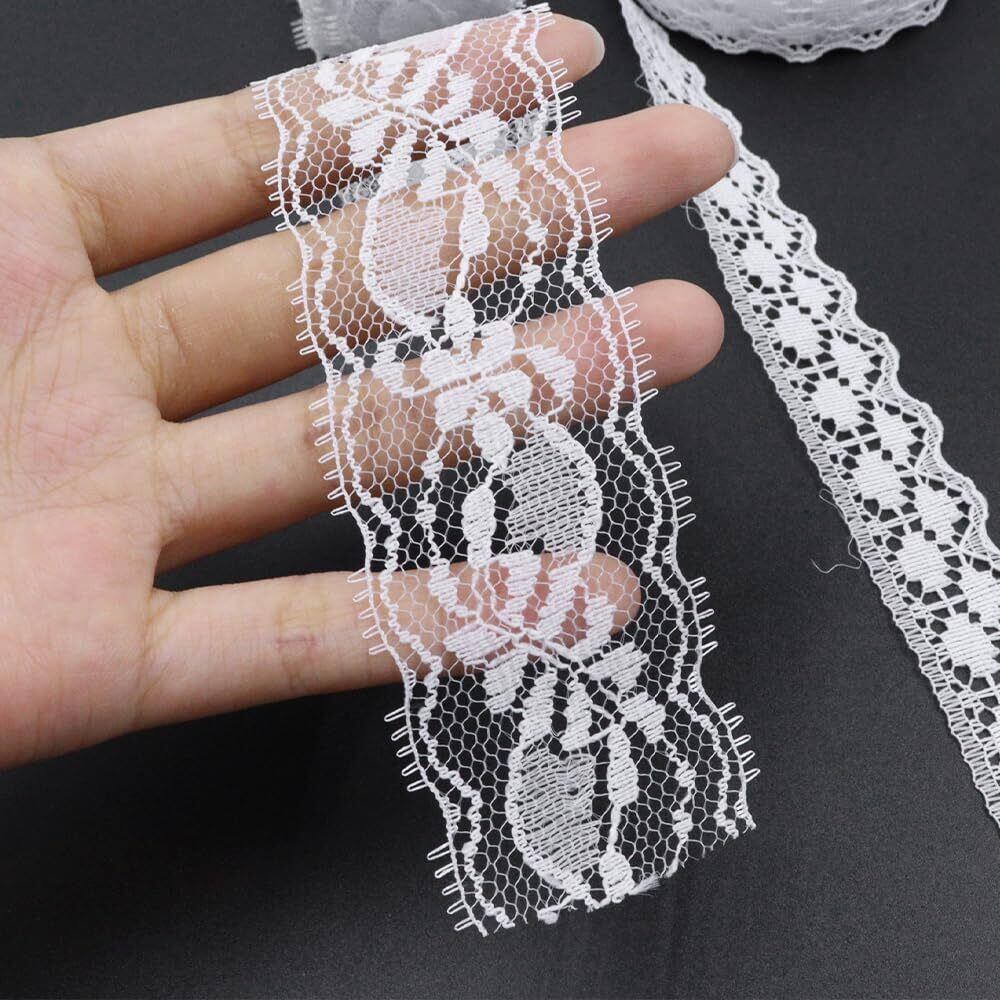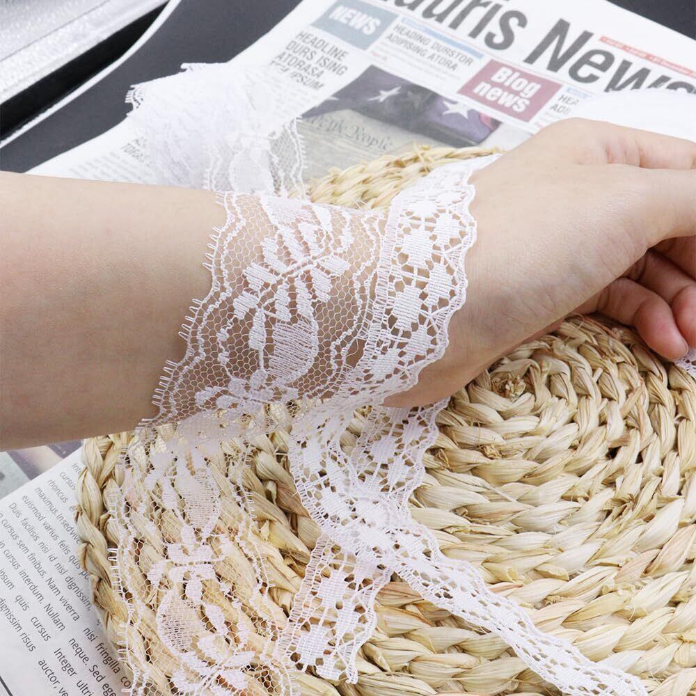 レースリボン 白 4巻 30m 手芸レース 裁縫 装飾 レース DIY 裁縫 装飾 ギフト包装 ハンドメイド資材 デコレーション用