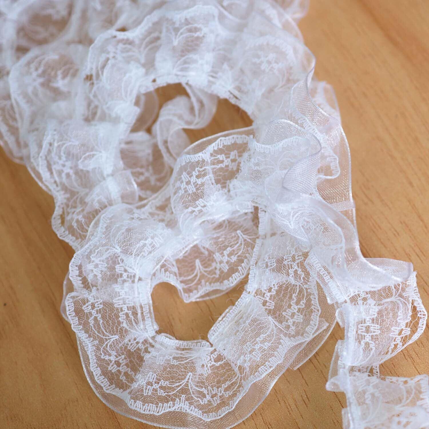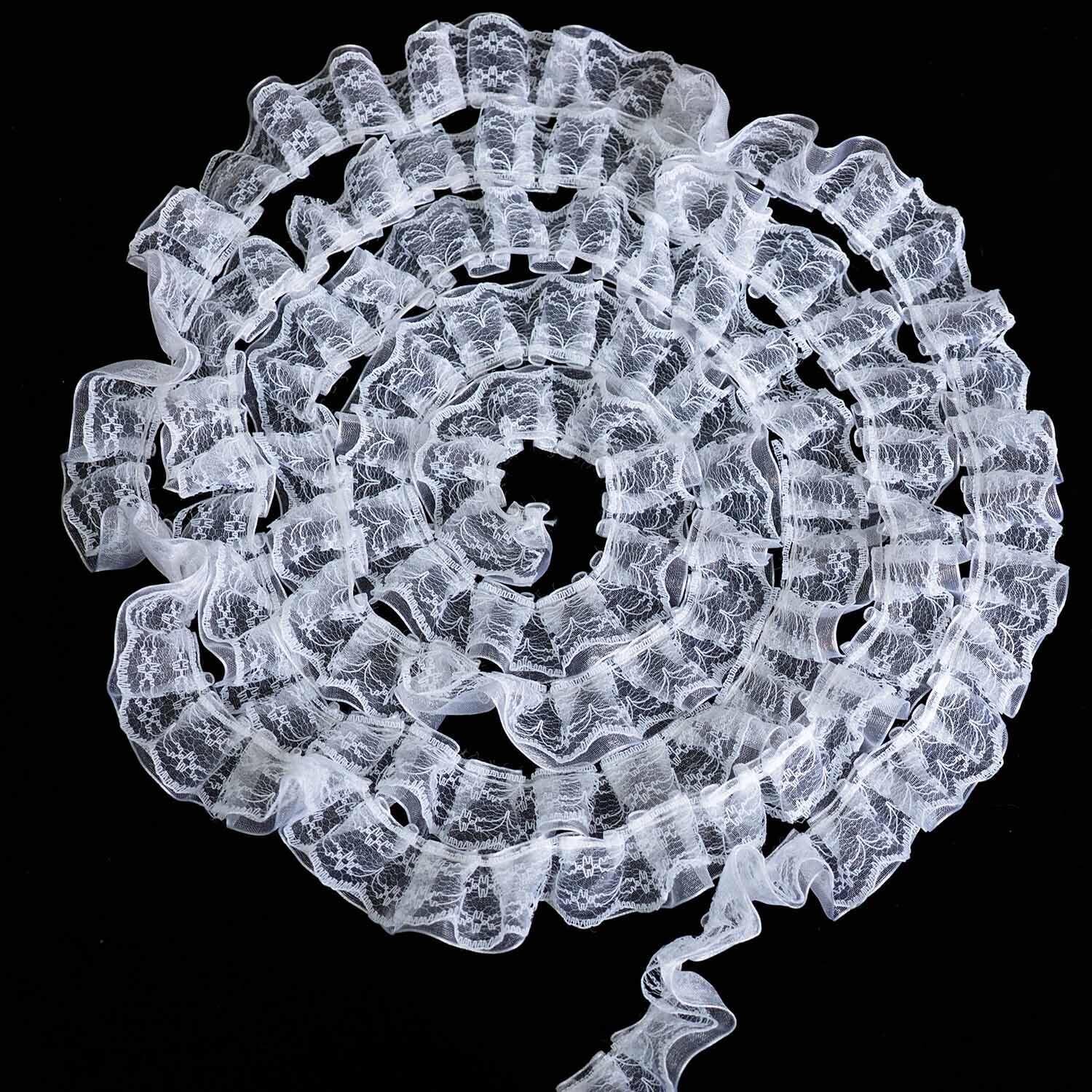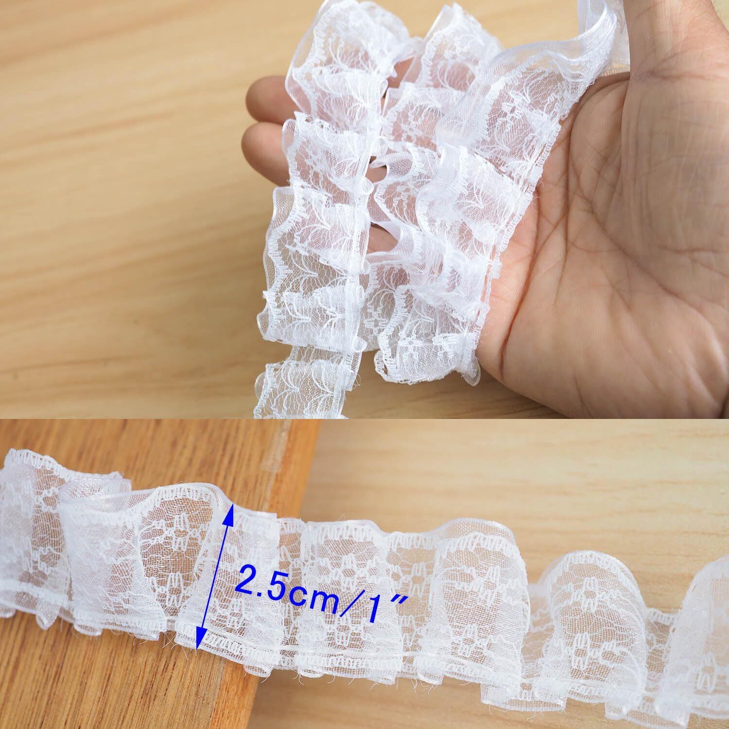 超柔 2段 フリルレース リボン-幅 約2.5m,DIY手作り 補助縫製材料 誕生日 クリスマス ギフト 衣装飾りのに最適 (ホワイト, 長さ 5ヤード)