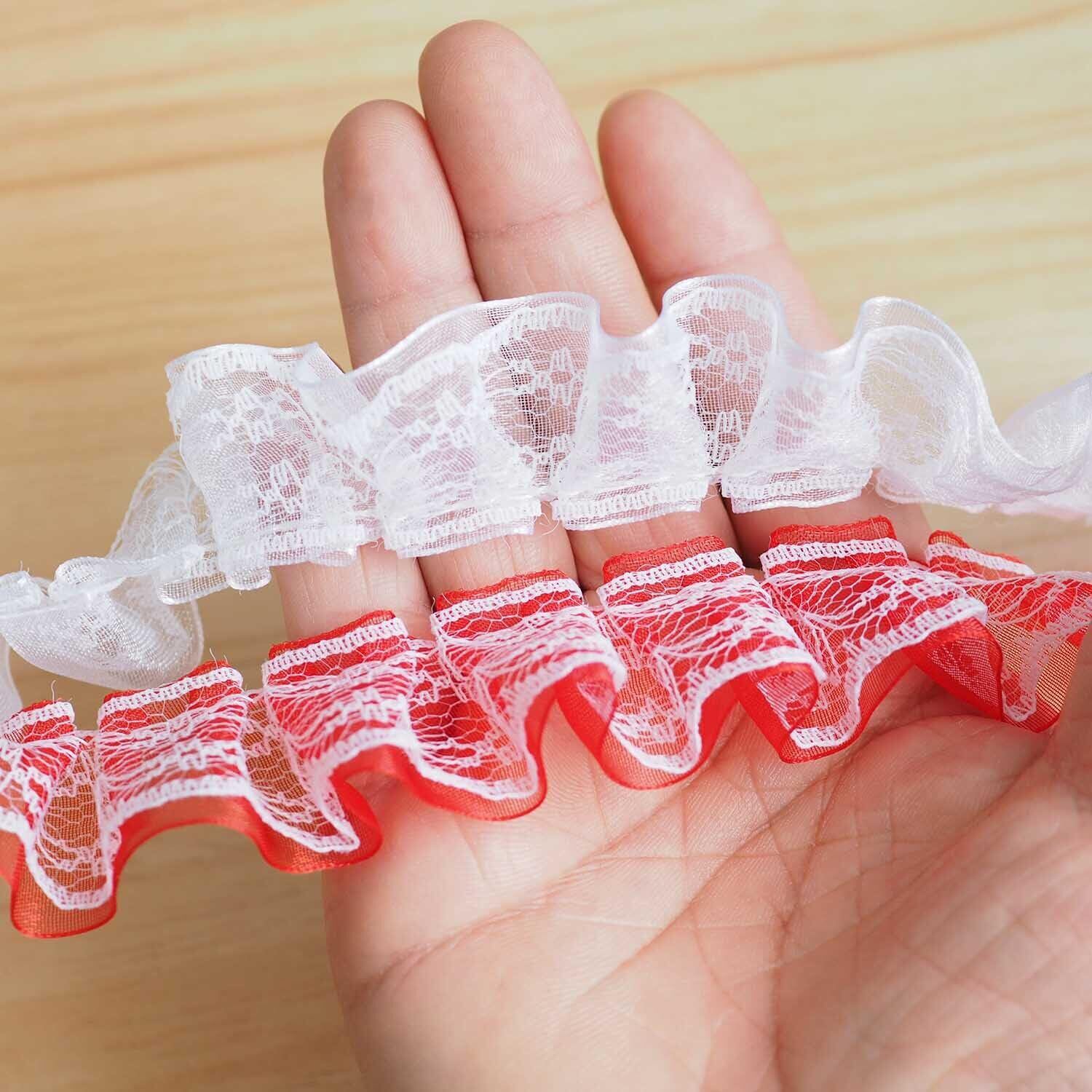 【2段フリルデザインが可愛い】:1本で華やかな立体感が出せ、シンプルなアイテムが一気にフェミニンに!二重構造のデザインにより、このギャザーレースはより立体的でスタイリッシュ。さまざまなDIYプロジェクトにぴったりです。