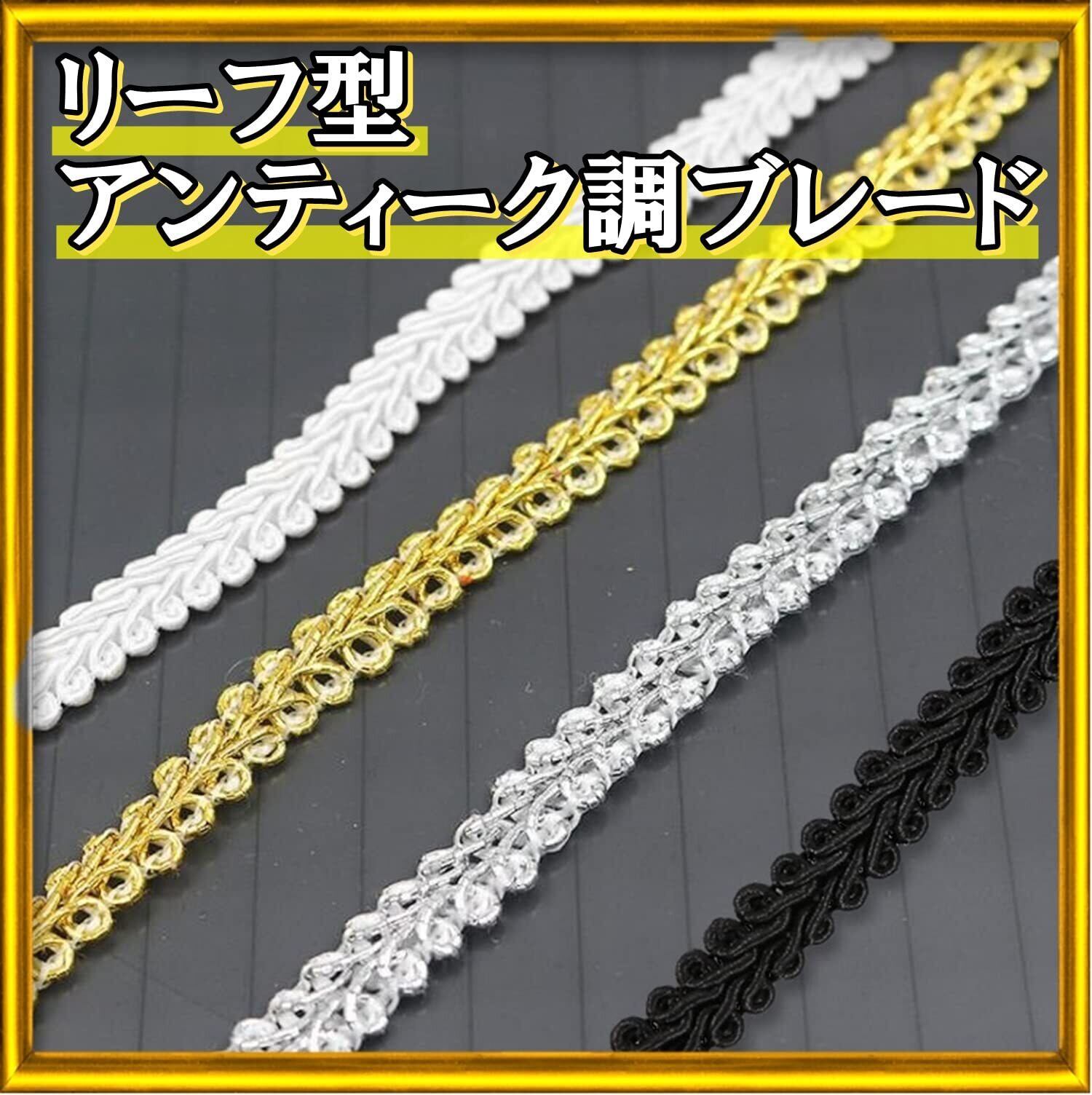 moonfarm 手芸用 ブレード リボン 幅約7㎜×5~42m リーフ型 細い トリミング (ゴールド, 10m)