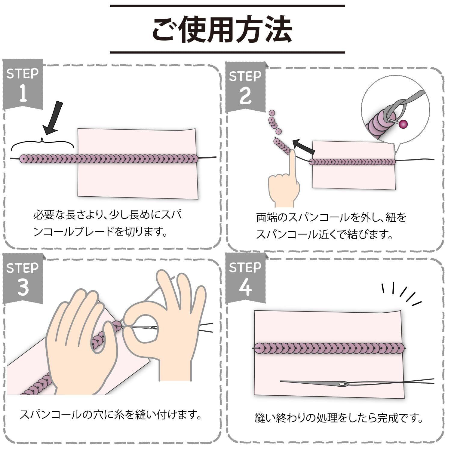 【特徴】キラキラしたスパンコールのブレードです。紐でつながっているので一直線に縫いやすく、散らばりにくいです。